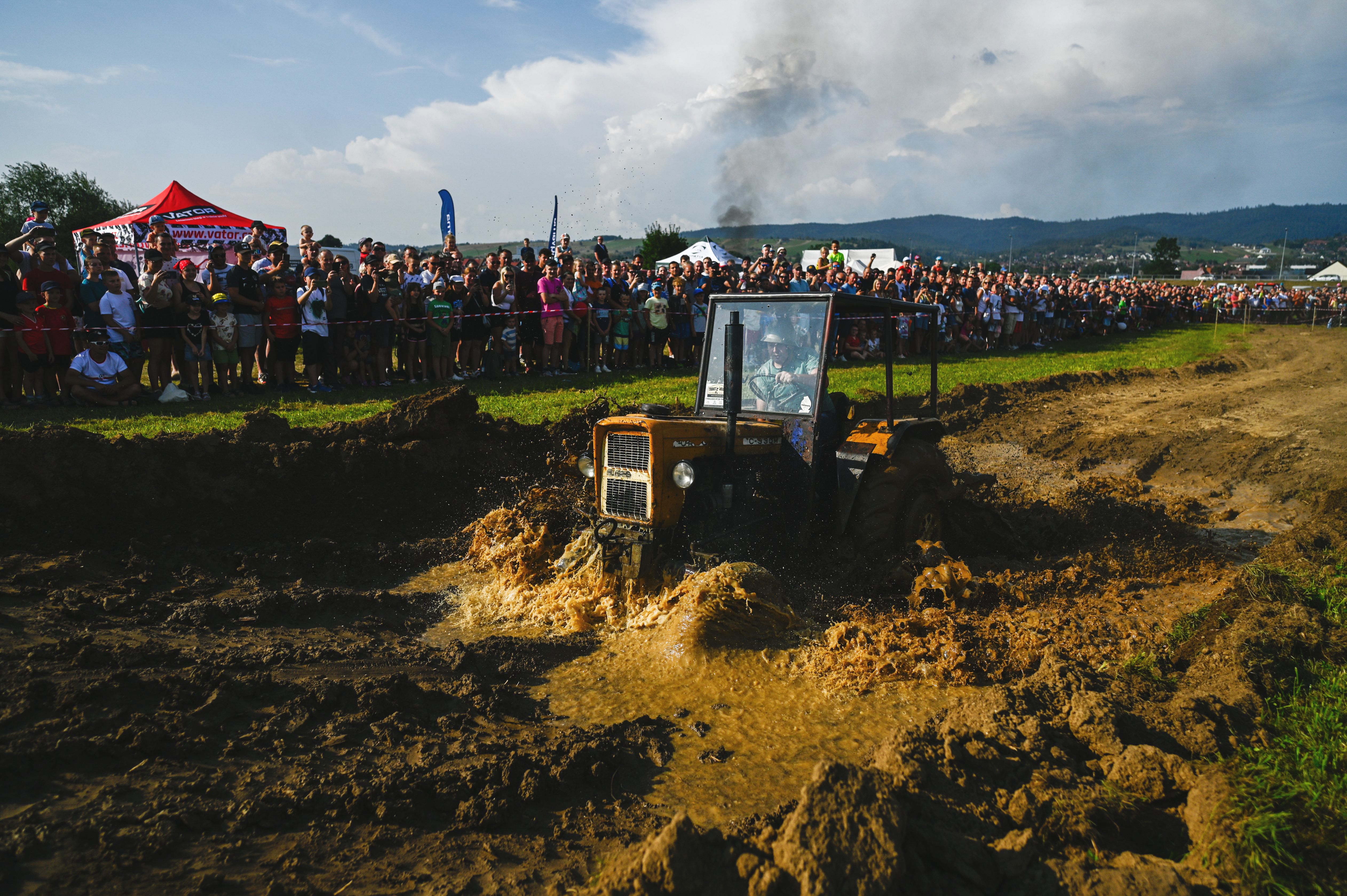 A Polish farmer drives a tractor trought an arena during the Polish farmers tractor race ahead of Harvest celebrations in Nowy Targ, Poland on August 31, 2024. Every year, in Southern Poland, farmers organise a tractor race moments before the Harvest celebrations where visitors can find old vintage tractors to the newly built ones. (Photo by Omar Marques/Anadolu via Getty Images)
