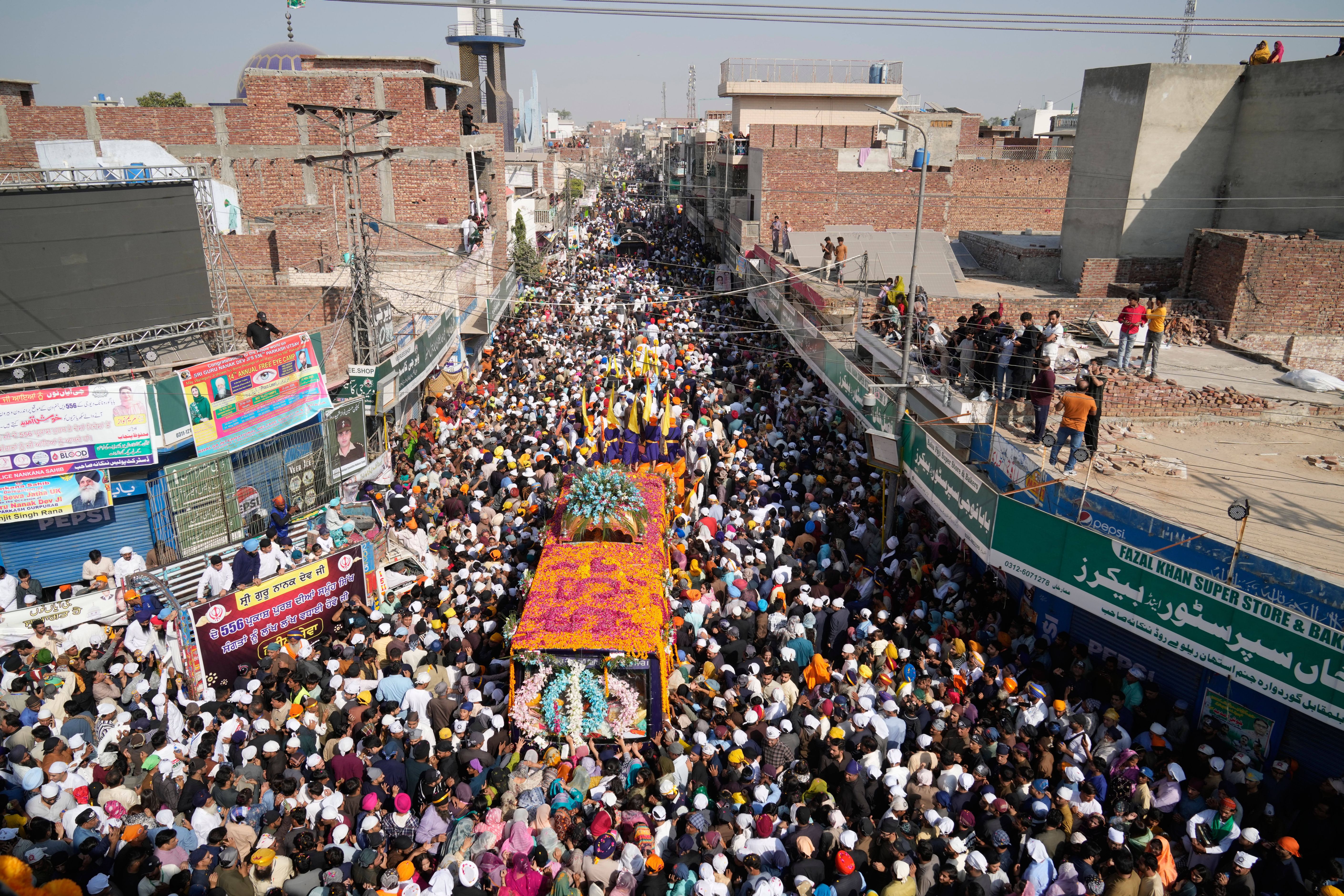 Sikh pilgrims attend a religious ceremony in celebrations marking the birth anniversary of of their spiritual leader Baba Guru Nanak Dev, at the Gurdwara Janam Asthan Nankana Sahib near Lahore,Pakistan, Wednesday, November 5, 2025. (Photo by K.M. Chaudary/AP Photo)