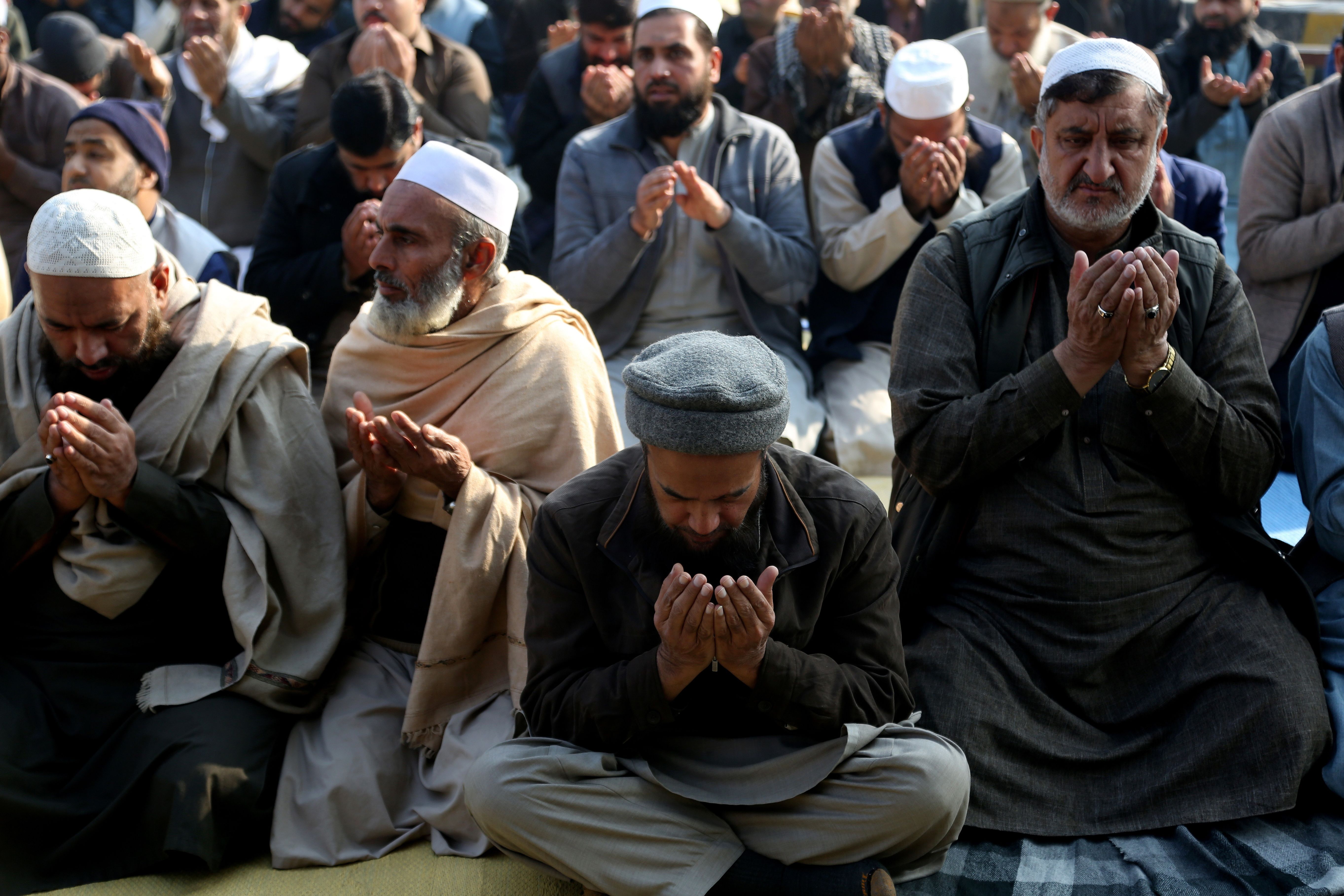People gather for a congregational rain-seeking prayer at a park in Peshawar, Pakistan, 08 December 2025. Punjab's air quality has sharply deteriorated, with Lahore topping global pollution rankings as dense smog spreads across the province. Authorities issued alerts, stepped up inspections, and deployed drones, while health advisories urged residents to limit outdoor activities amid persistent stagnant winter weather. (Photo by Arshad Arbab/EPA)