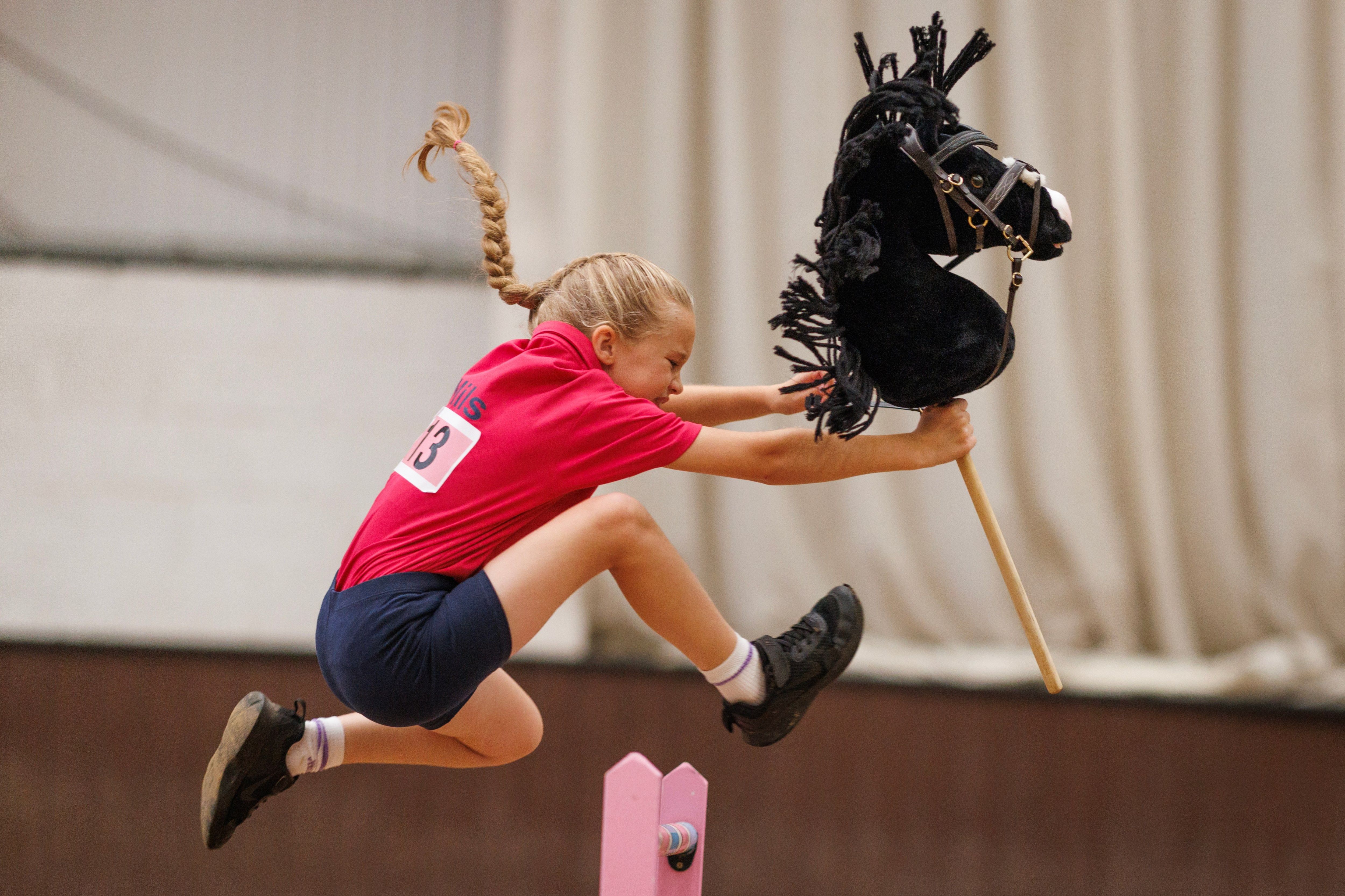 Competitors practice their moves before taking part in the UK Hobby Horse championship at Bury Farm Equestrian Centre on September 08, 2024 in Slapton, United Kingdom. While hobby horsing as a form of play has been around for centuries, the modern-day interpretation of the sport originated in Finland. Hobby horse competitions feature young enthusiasts trotting, galloping, and cantering on toy horses in various disciplines such as jumping and dressage. Its popularity has surged in recent years, especially during covid, and is growing in appeal. Young equine enthusiasts take advantage of its inclusivity, and enjoy the physical activity required, creativity and freedom of expression. The sport has also been found to help young people suffering with autism and ADHD, giving them a chance to connect with other young people with a love of horses. (Photo by Dan Kitwood/Getty Images)