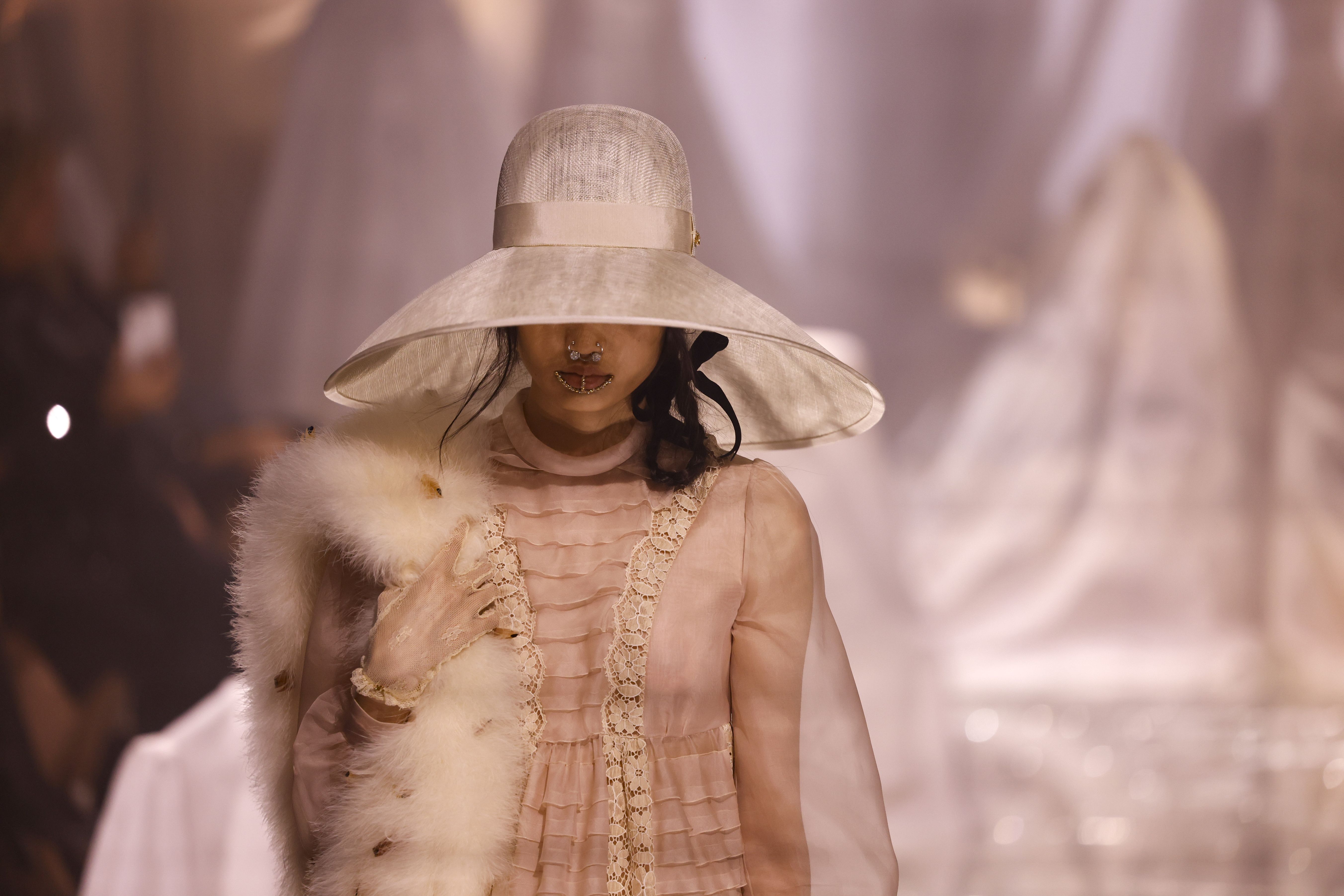 A model wears a creation as part of the Valentino Spring/Summer 2025 collection presented Sunday, September 29, 2024 in Paris. (Photo by Vianney Le Caer/Invision/AP Photo)