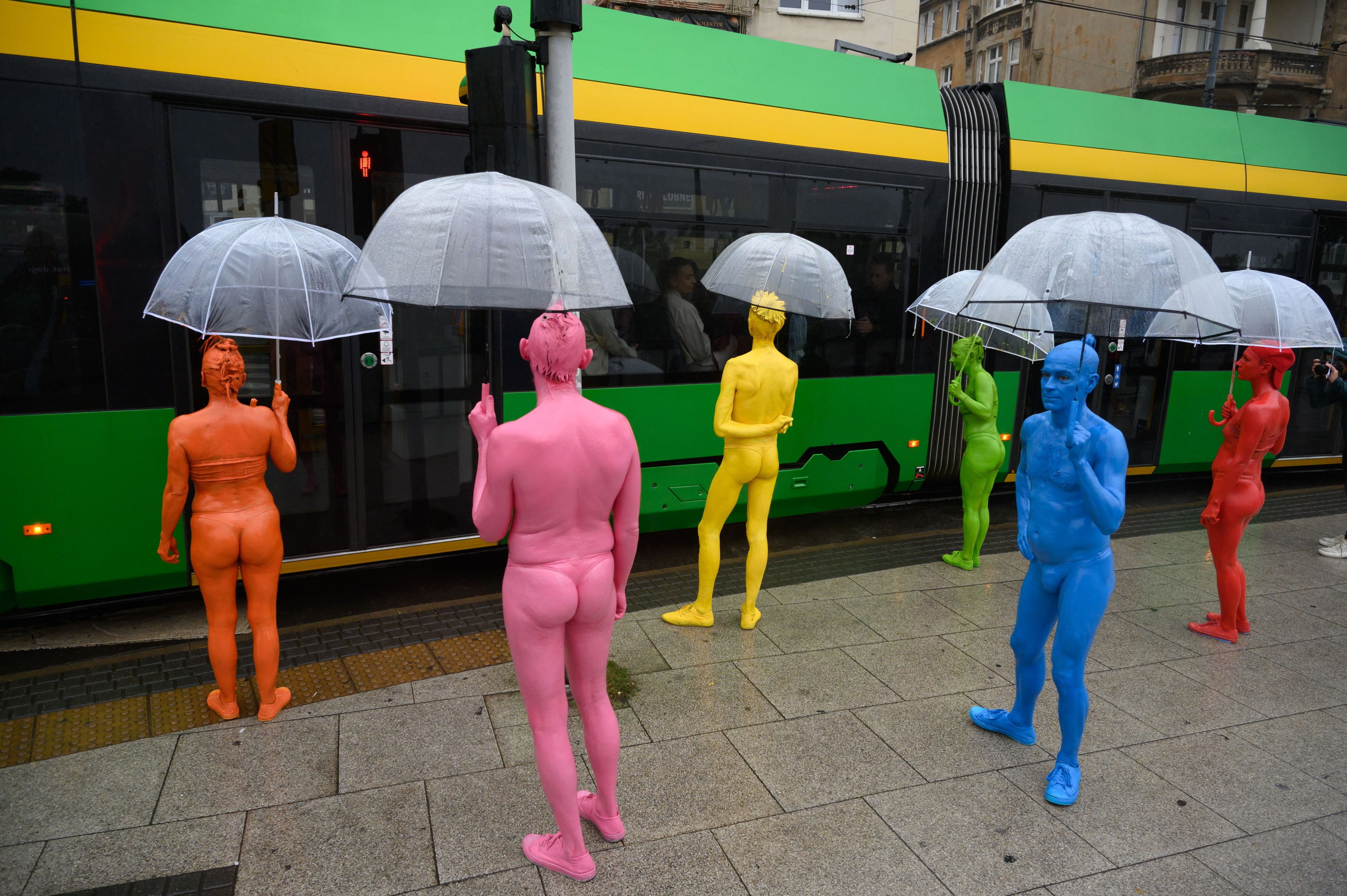Artists of French theater Ilotopie perform during the street performance “Colourful People” in the streets of Poznan, as part of the Malta Festival 2024, in Poznan, Poland, 09 September 2024. The festival runs until 15 September. (Photo by Jakub Kaczmarczyk/EPA)