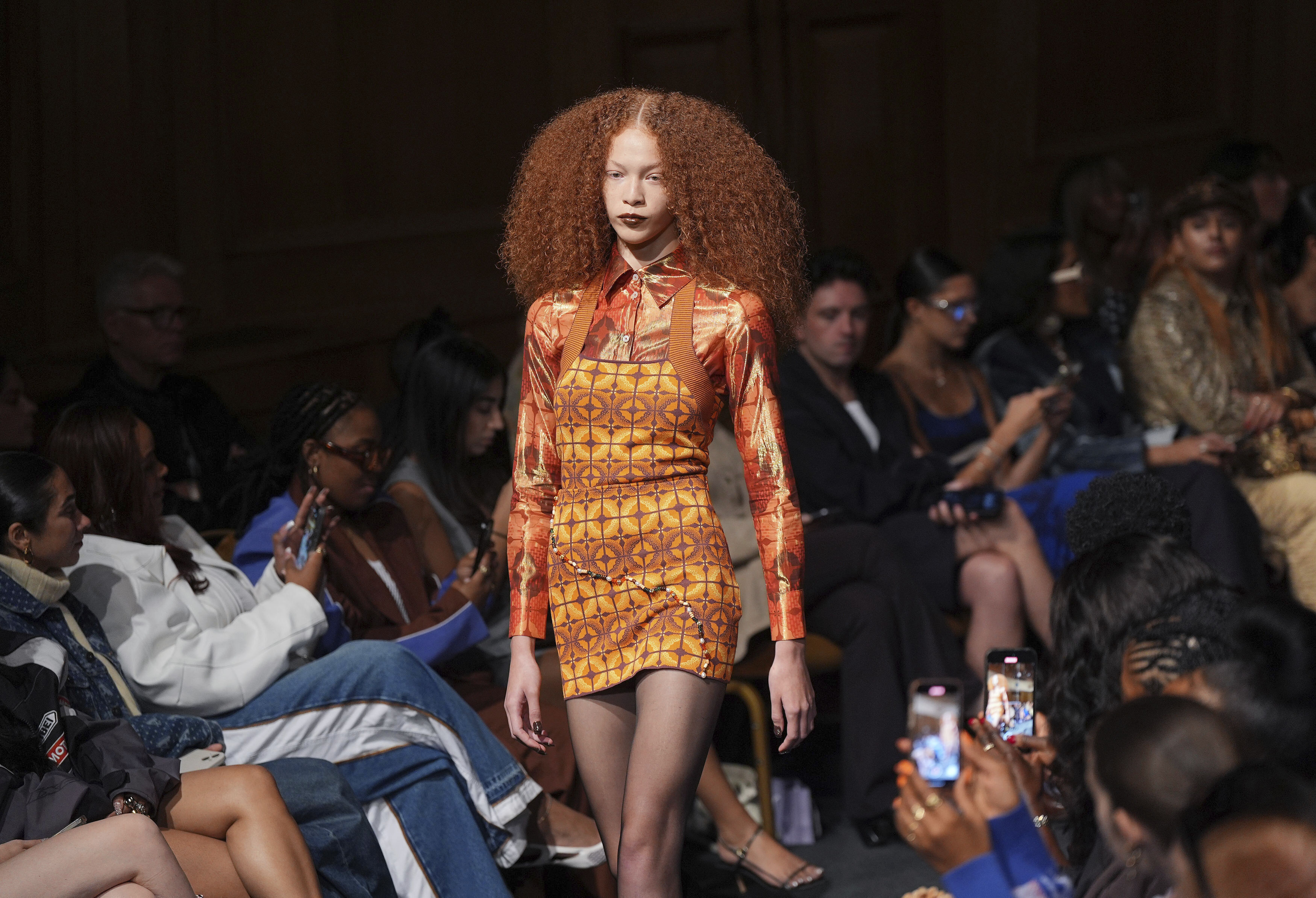 Models on the catwalk during the Ahluwalia show at Church House in Westminster, London, during London Fashion Week, Saturday September 14, 2024. (Photo by Yui Mok/PA Wire via AP Photo)