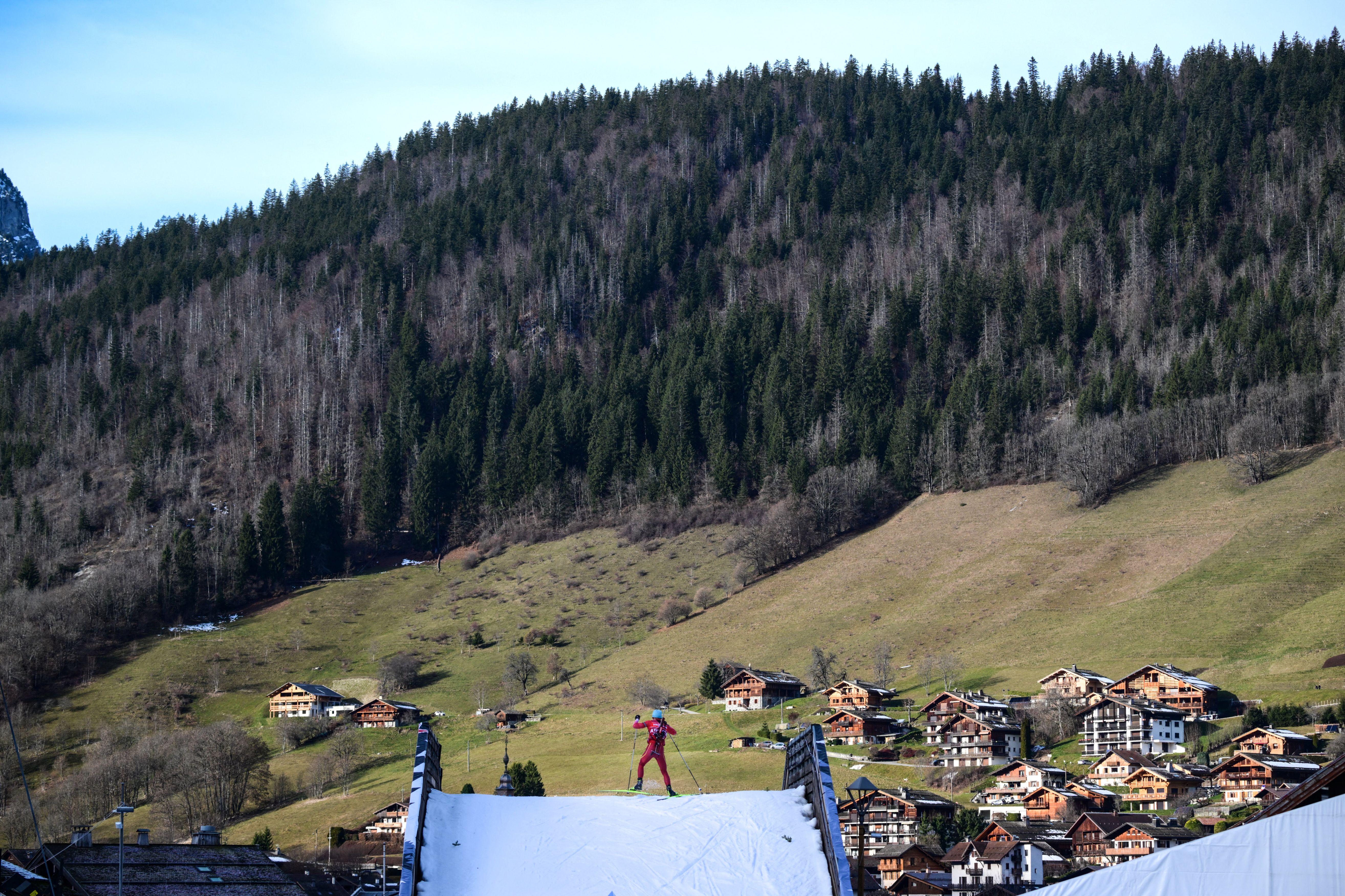 Biathletes practice during the IBU Biathlon World Cup in Le Grand Bornand near Annecy, central-eastern France, on December 18, 2025. (Photo by Olivier Chassignole/AFP via Getty Images)
