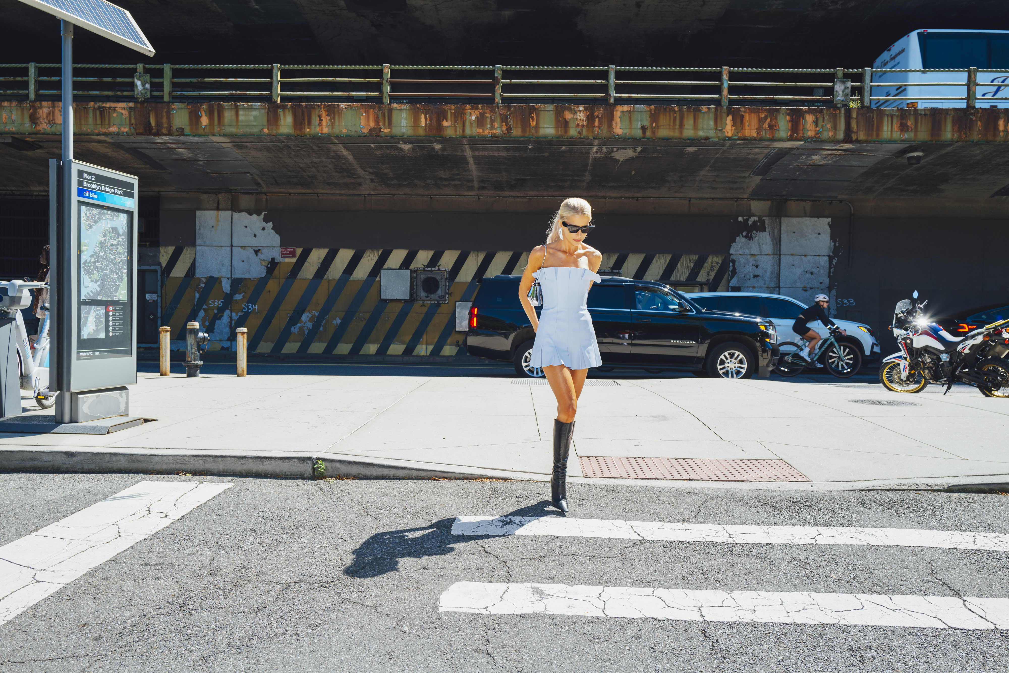 German fashion model and blogger Caroline Daur arrives to the Off-White show during New York Fashion Week (NYFW) in New York, New York on September 8, 2024. (Photo by Sara Konradi for The Washington Post)