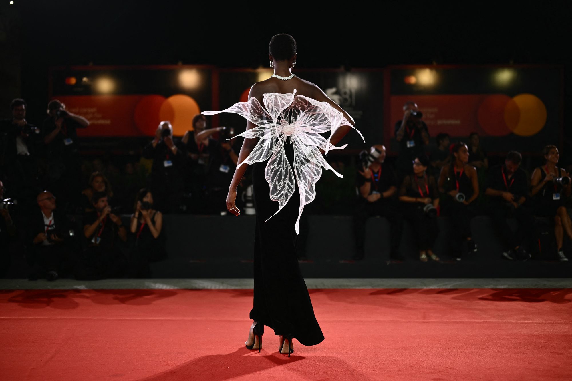 Angolan model Maria Borges attends the red carpet of the movie “Diva Futura“ presented in competition during the 81st International Venice Film Festival at Venice Lido, on September 4, 2024. (Photo by Marco Bertorello/AFP Photo)