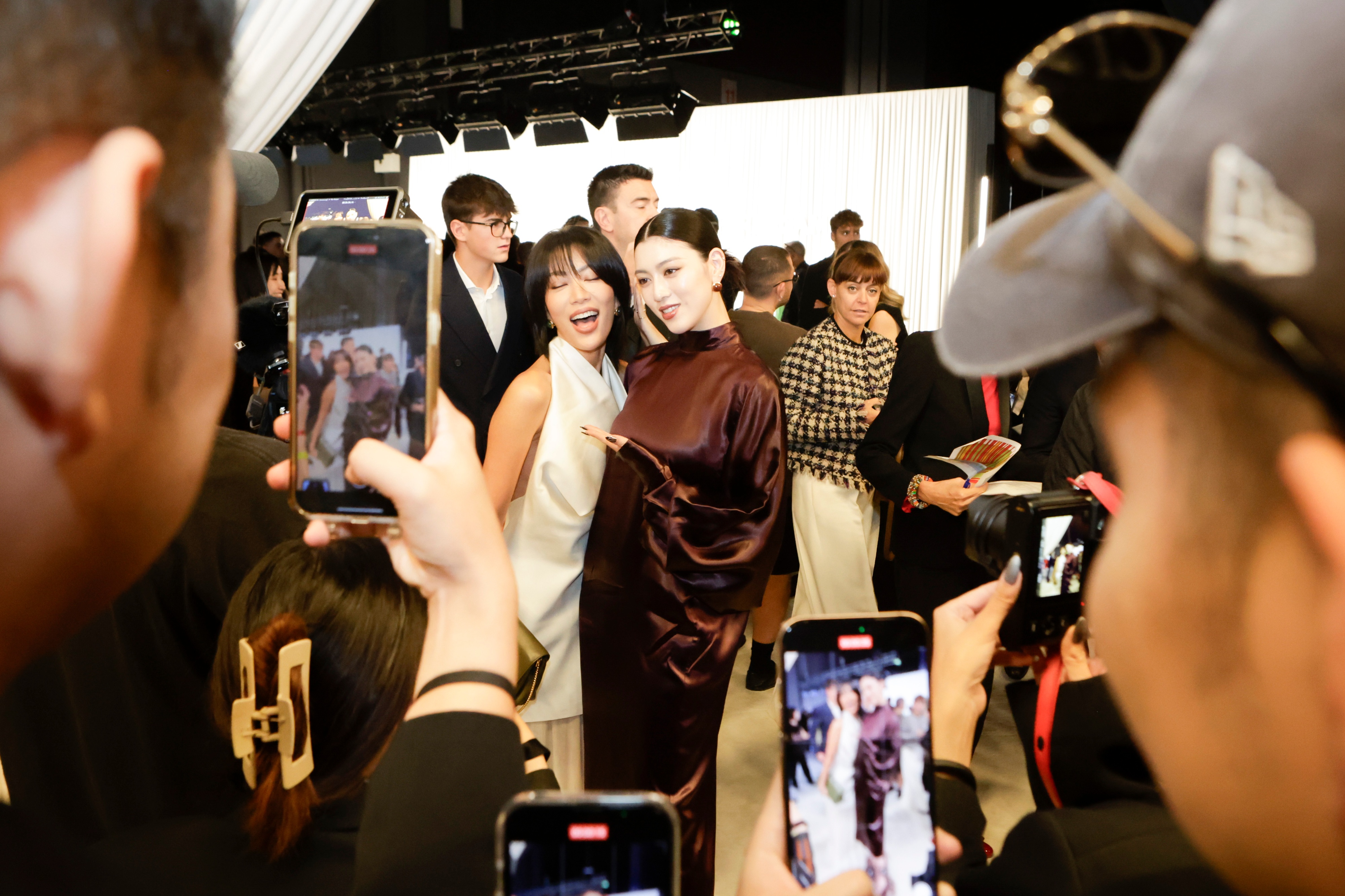 Taiwanese social media influencer Molly Chiang and another celebrity guest at the Salvatore Ferragamo show on September 21, 2024 in Milan, Italy. (Photographs by Jonas Gustavsson for The Washington Post
