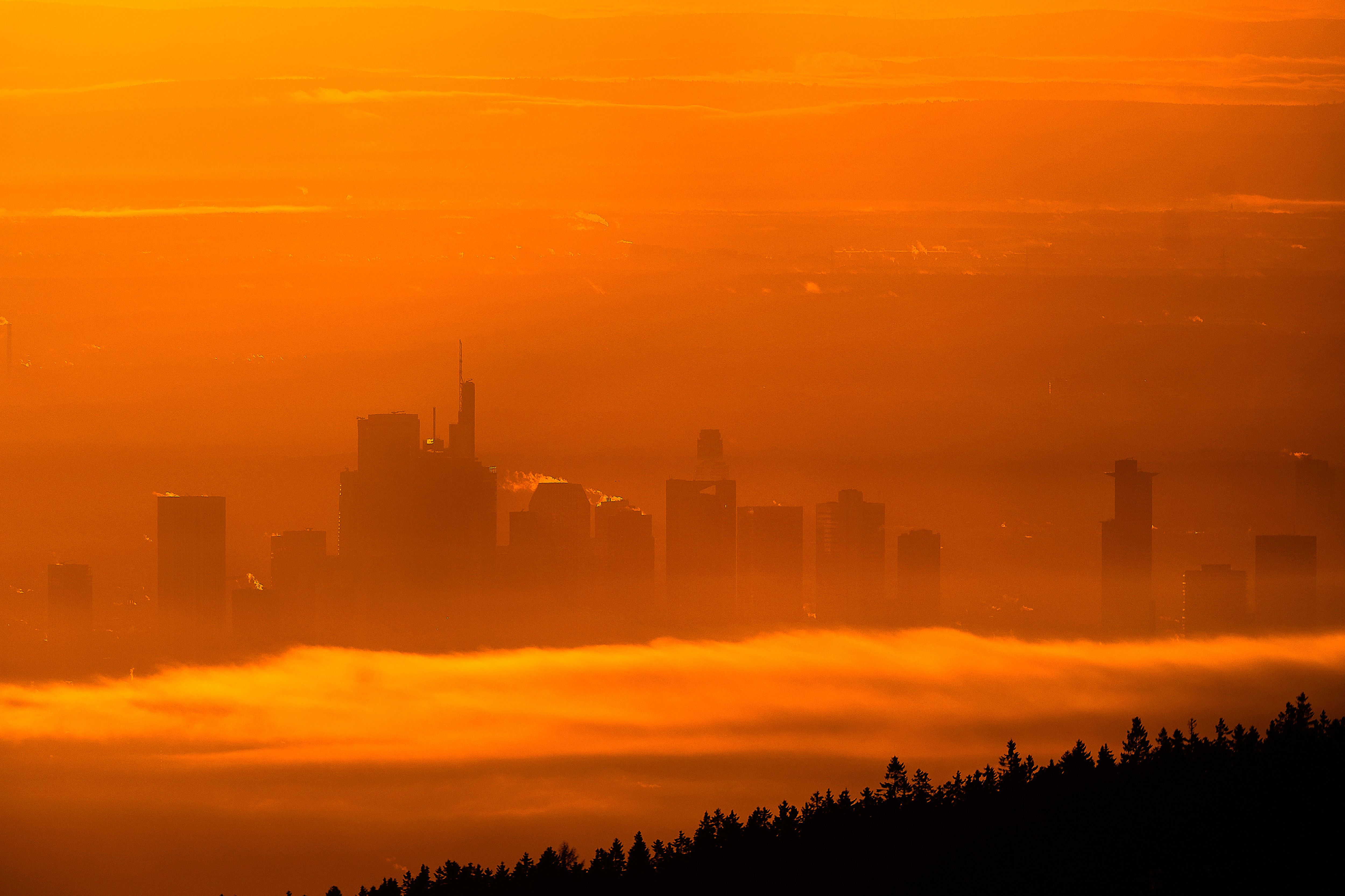 The buildings of the banking district are seen through light fog in Frankfurt, Germany, Monday, December 1, 2025. (Photo by Michael Probst/AP Photo)