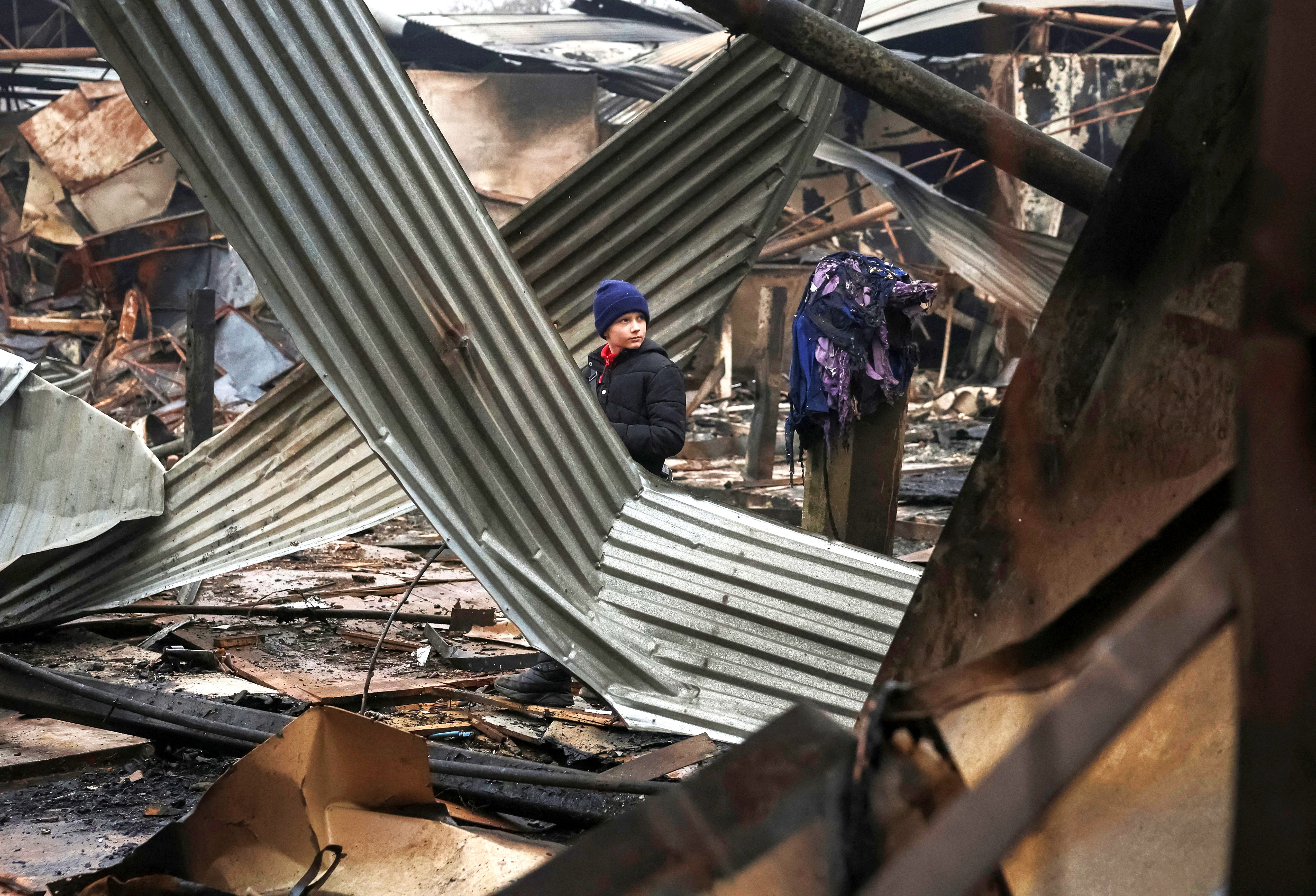 A boy looks at the damaged central market, hit by a Russian military overnight strike, amid Russia's attack on Ukraine, in the frontline city of Kramatorsk, Ukraine, on November 30, 2025. (Photo by Anatolii Stepanov/Reuters)