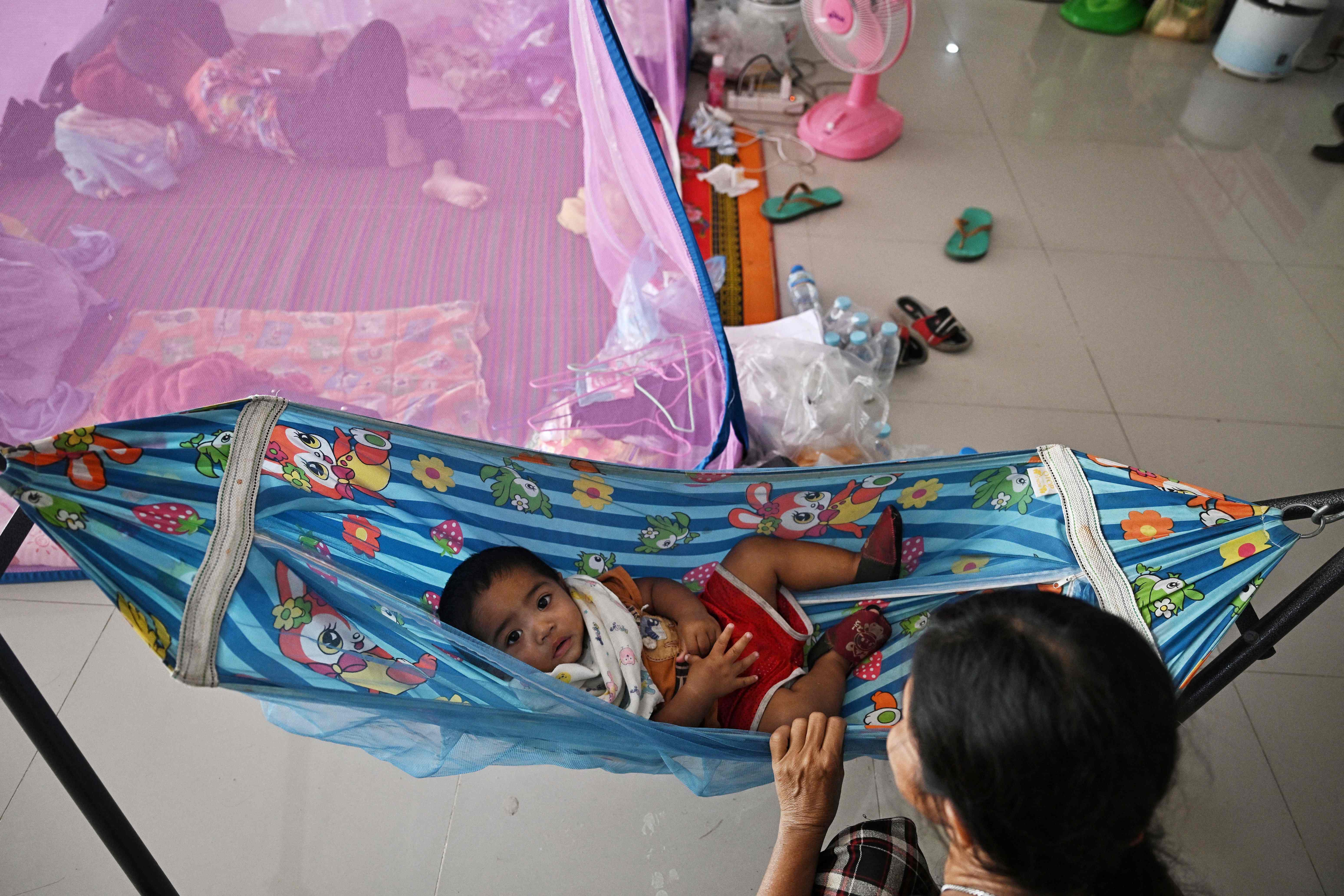 Displaced residents rest at an evacuation center in the Thai border province of Surin on December 12, 2025. At least 20 people have been killed in the latest round of border fighting that reignited last week, officials said. (Photo by Lillian Suwanrumpha/AFP Photo)