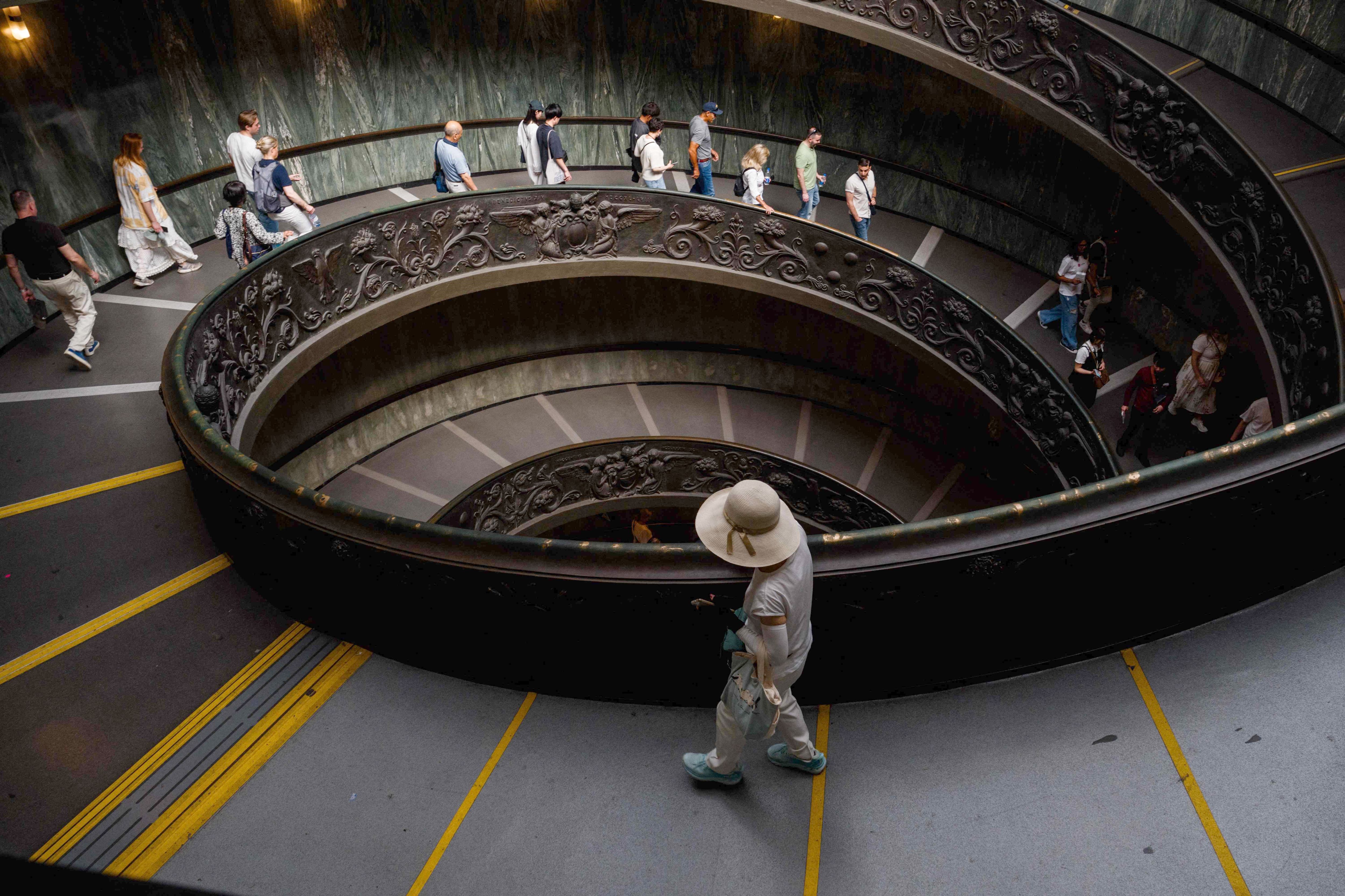 Visitors walk down the Bramante Staircase at The Vatican Museums, during a press tour at the Vatican on May 2, 2025. (Photo by Dimitar Dilkoff/AFP Photo)