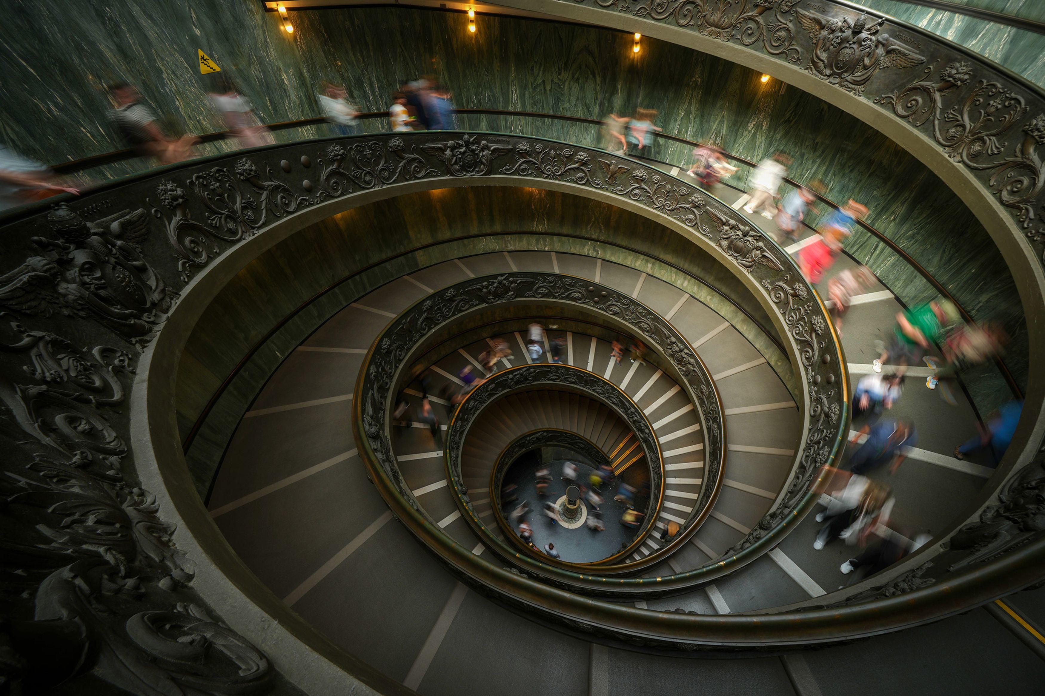 People walk on the double-helix Bramante staircase in the Vatican Museum on Friday, May 2, 2025. (Photo by Christopher Furlong/Getty Images)