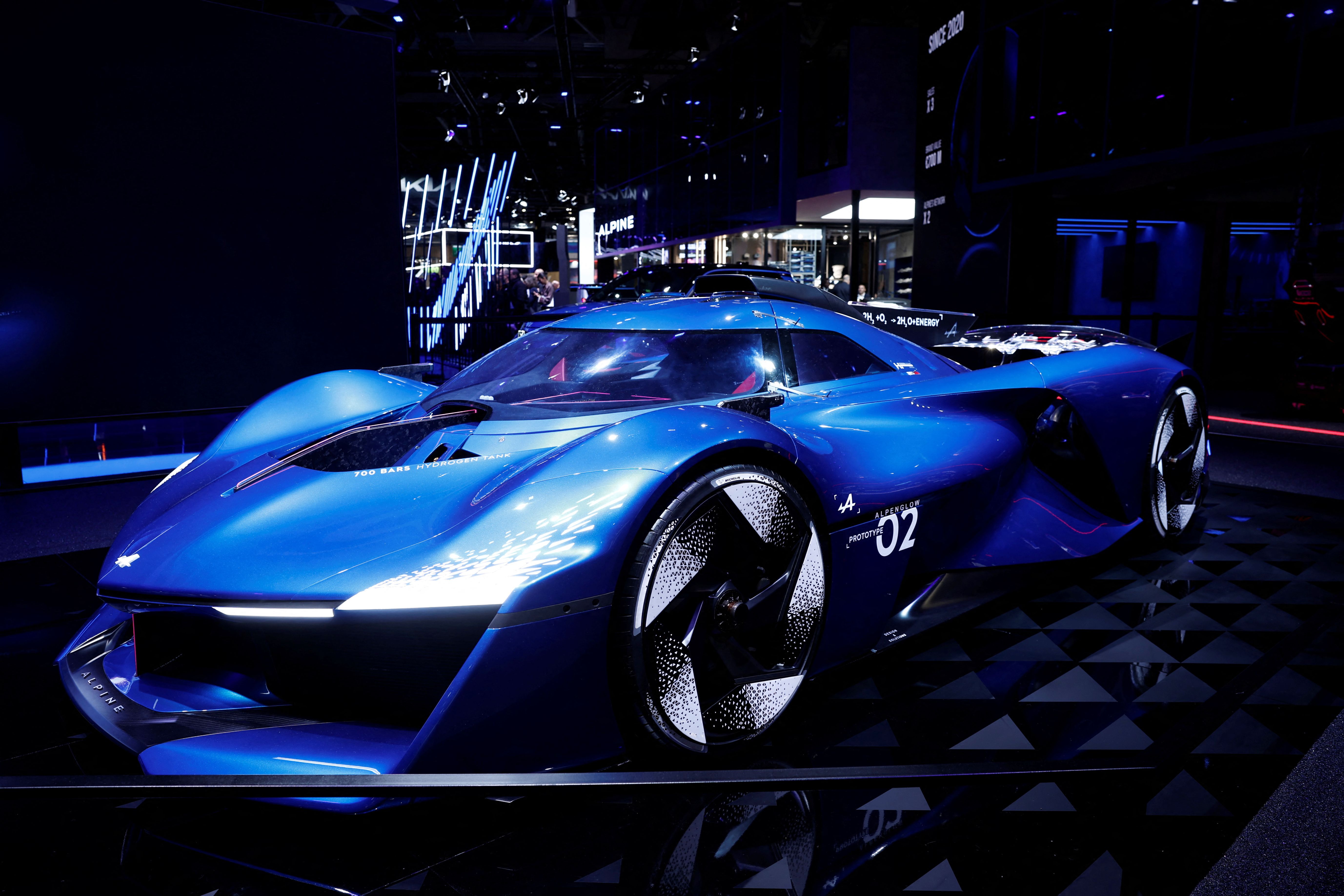 The Alpine Alpenglow Hy6 prototype car is displayed on media day at the 2024 Paris Auto Show in Paris, France, on October 14, 2024. (Photo by Benoit Tessier/Reuters)