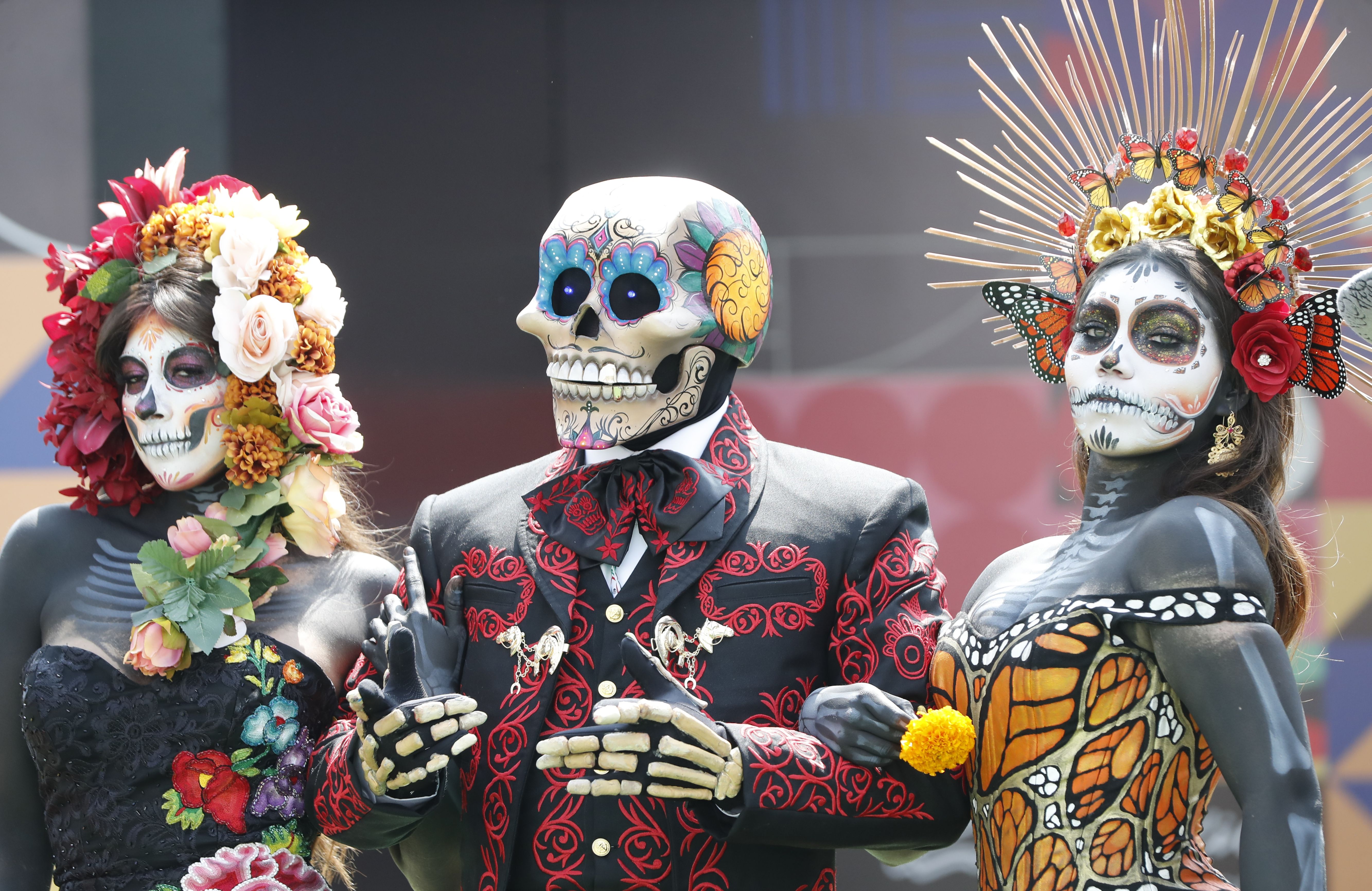 People dressed as catrinas participate in the first day of activities ahead of the Formula One Mexico Grand Prix at the Hermanos Rodriguez Racetrack in Mexico City, Mexico, 24 October 2024. The Formula One Mexico Grand Prix takes place on 27 October. (Photo by Mario Guzman/EPA/EFE)