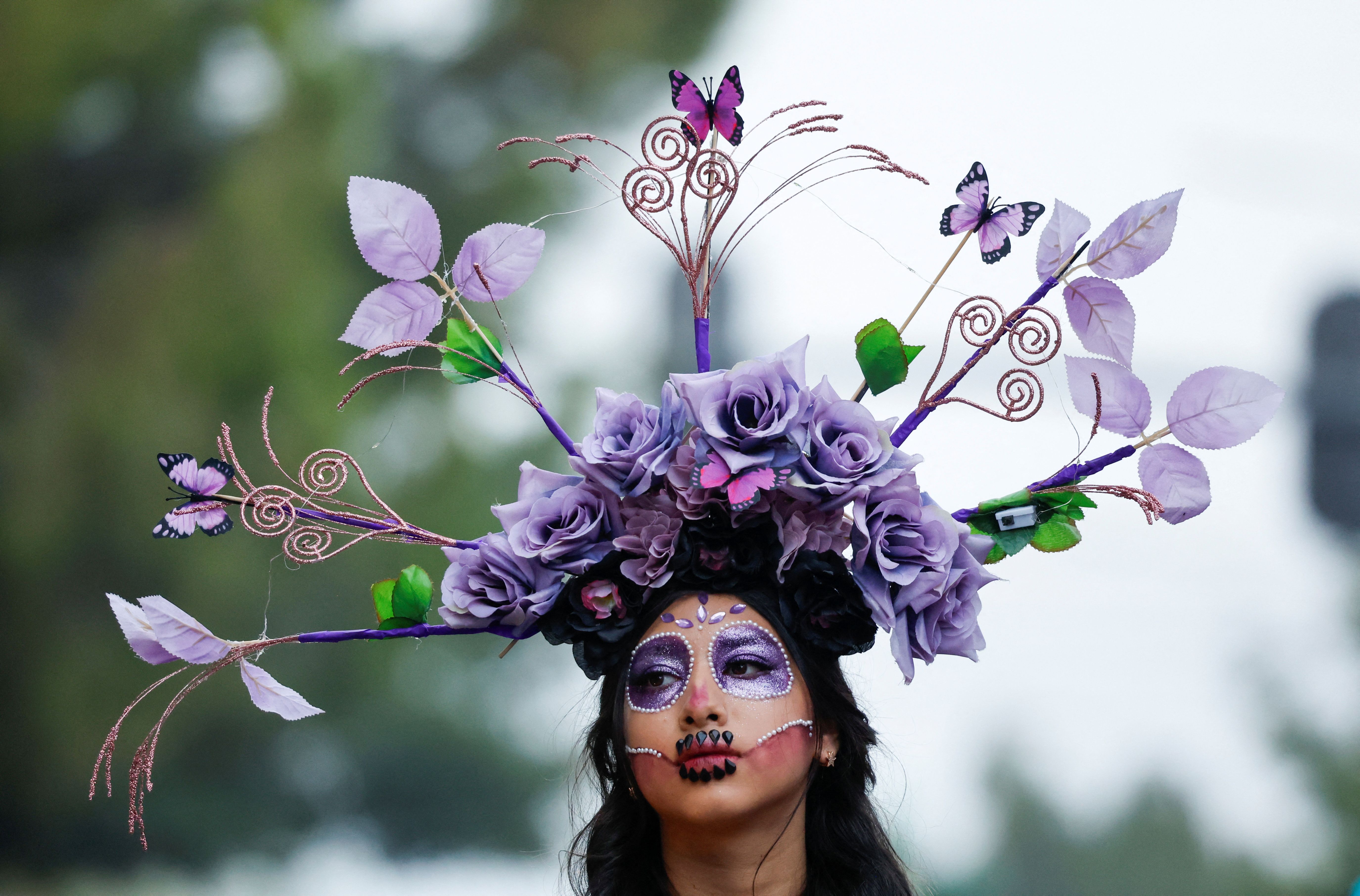 A woman dressed as a Catrina takes part in the annual parade of Catrinas on the Day of the Dead, in Saltillo, Mexico on November 2, 2024. (Photo by Daniel Becerril/Reuters)