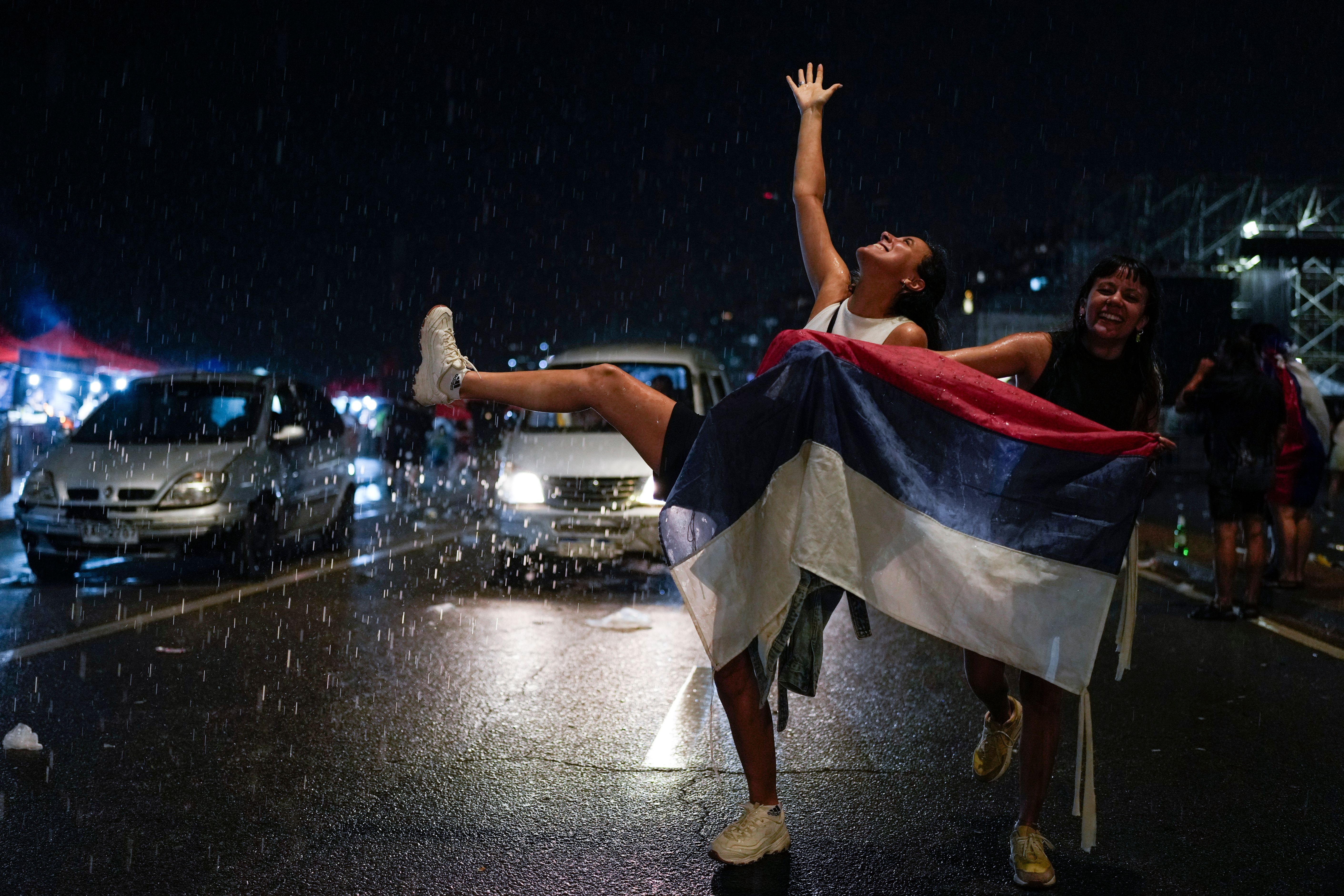 Supporters of the Broad Front (Frente Amplio) celebrate the victory of candidate Yamandú Orsi in the presidential run-off election in Montevideo, Uruguay, Sunday, November 24, 2024. (Photo by Natacha Pisarenko/AP Photo)