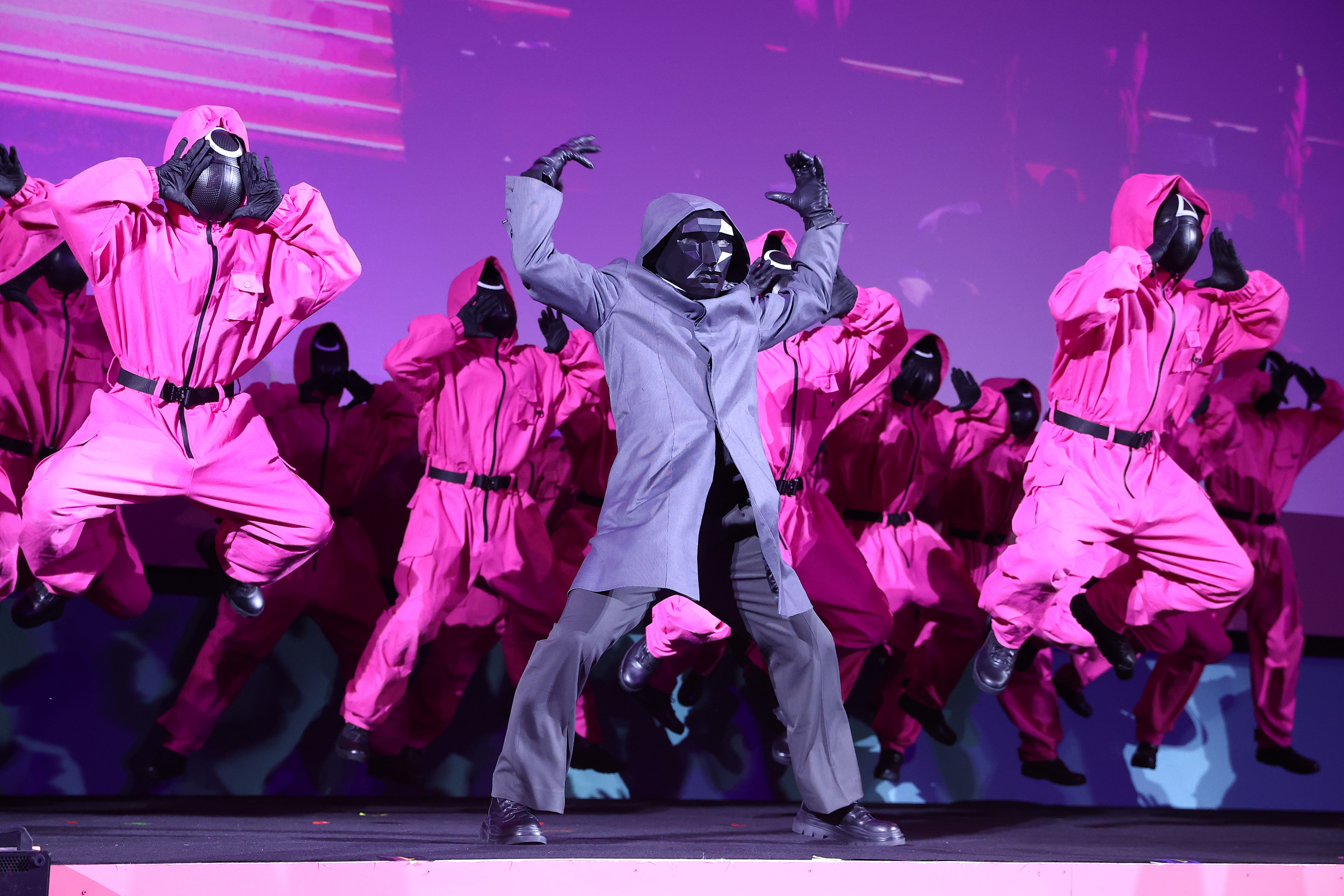 Performers on stage during the global premiere of “Squid Game Season 2” on December 09, 2024 in Seoul, South Korea. (Photo by Chung Sung-Jun/Getty Images)