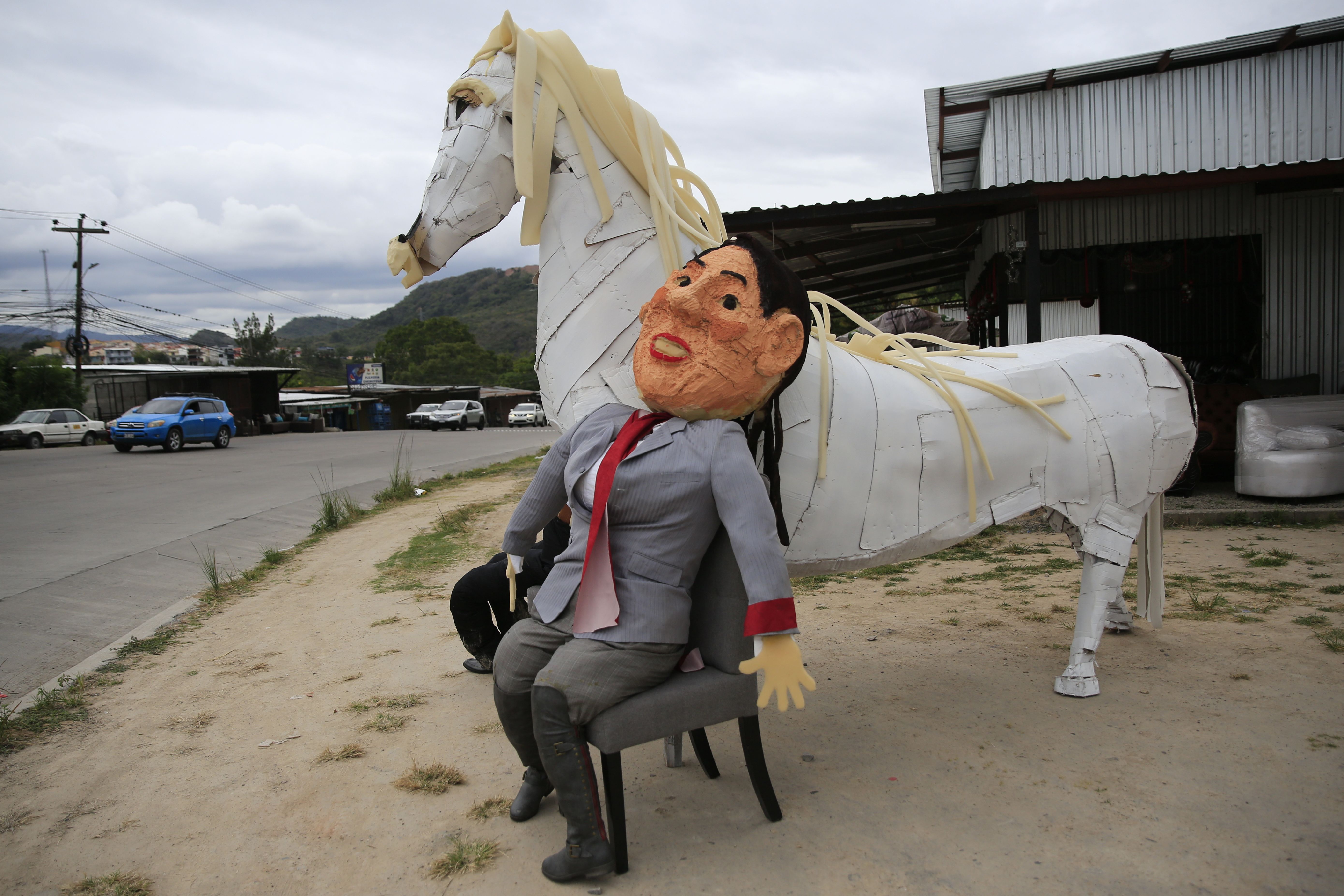 An “Ano Viejo”, representing Honduran President Xiomara Castro, in the village of Germania, south of Tegucigalpa, Honduras, 30 December 2024. Effigies symbolizing the “Ano Viejo” (old year) will be 'burned' as part of New Year's Eve traditions. (Photo by Gustavo Amador/EPA)