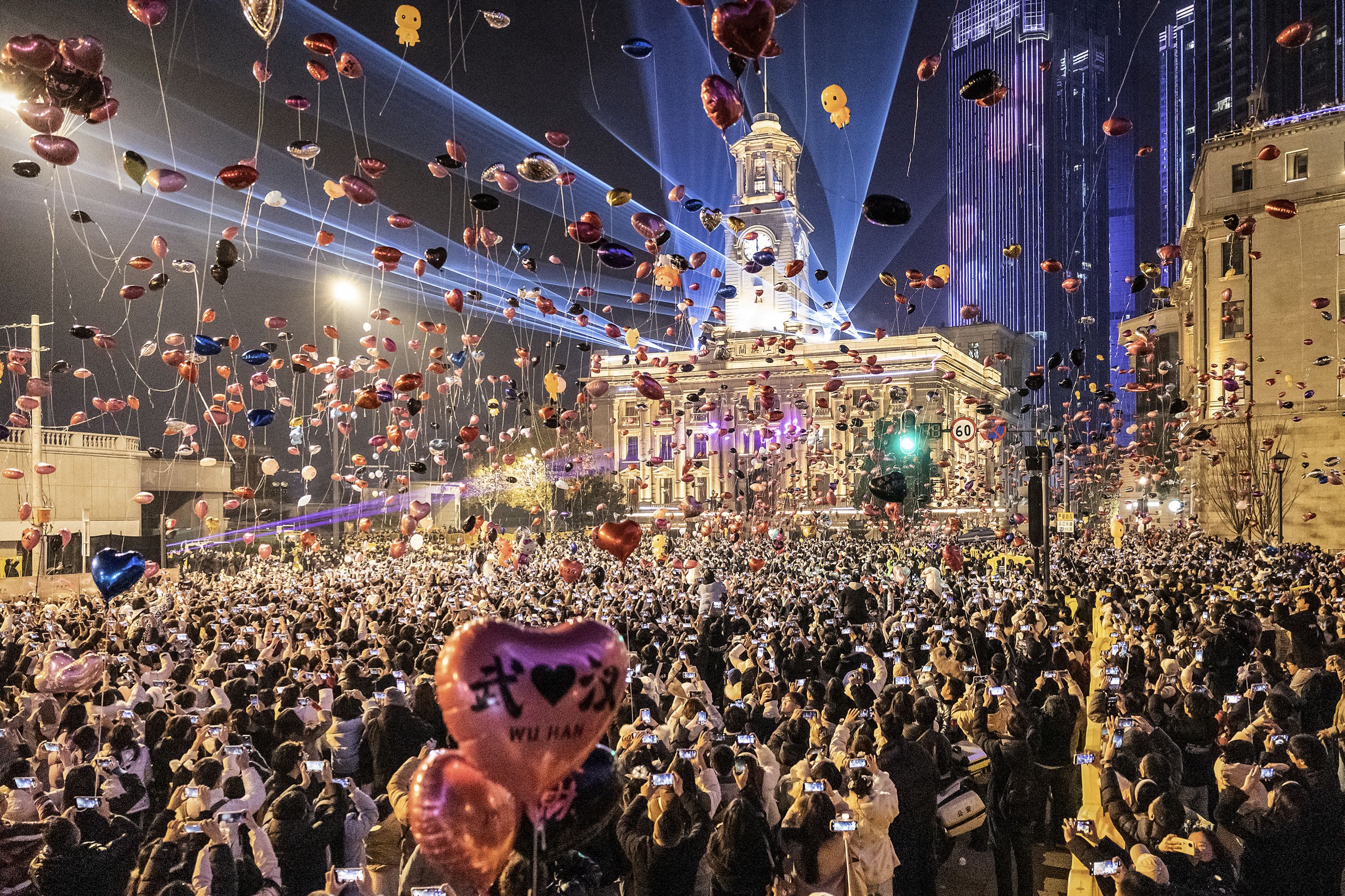 People attend a New Year celebration in Wuhan, in China's central Hubei province on January 1, 2025. (Photo by AFP Photo/China Stringer Network)