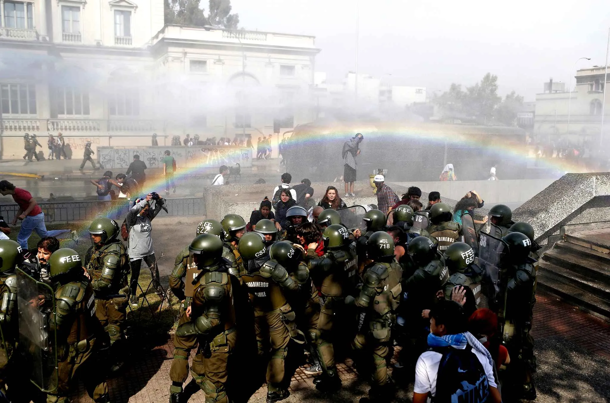 Student protesters are detained during a clash at a rally demanding Chile's government to change to reform the education system, at Santiago, April 25, 2013. (Photo by Ivan Alvarado/Reuters)
