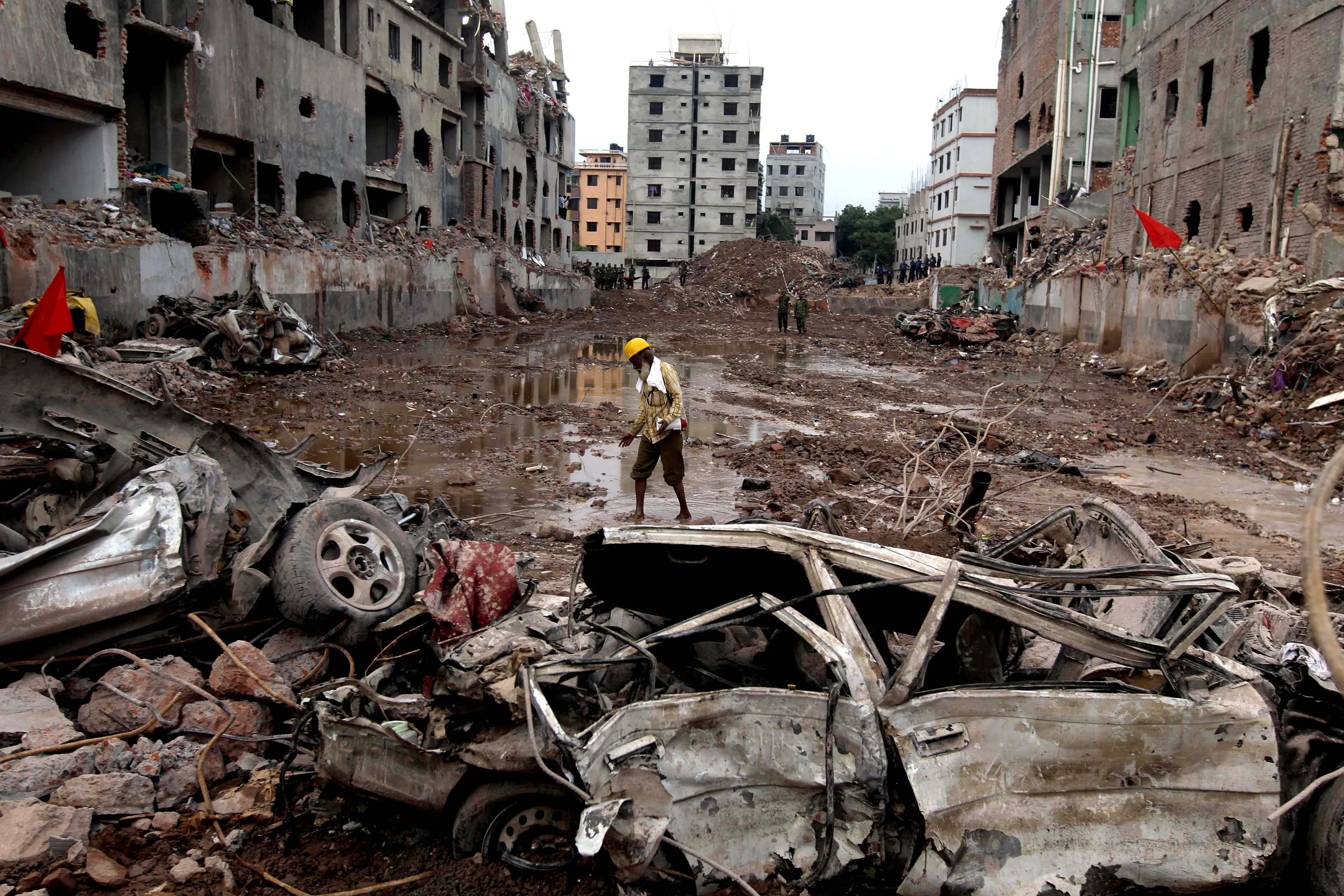 A man walks at the site of the collapsed garment-factory building in Savar, Bangladesh, on May 13, 2013. Nearly three weeks after the building collapsed, the search for the dead ended Monday at the site of the worst disaster in the history of the global garment industry. The death toll: 1,127. (Photo by A. M. Ahad/Associated Press)
