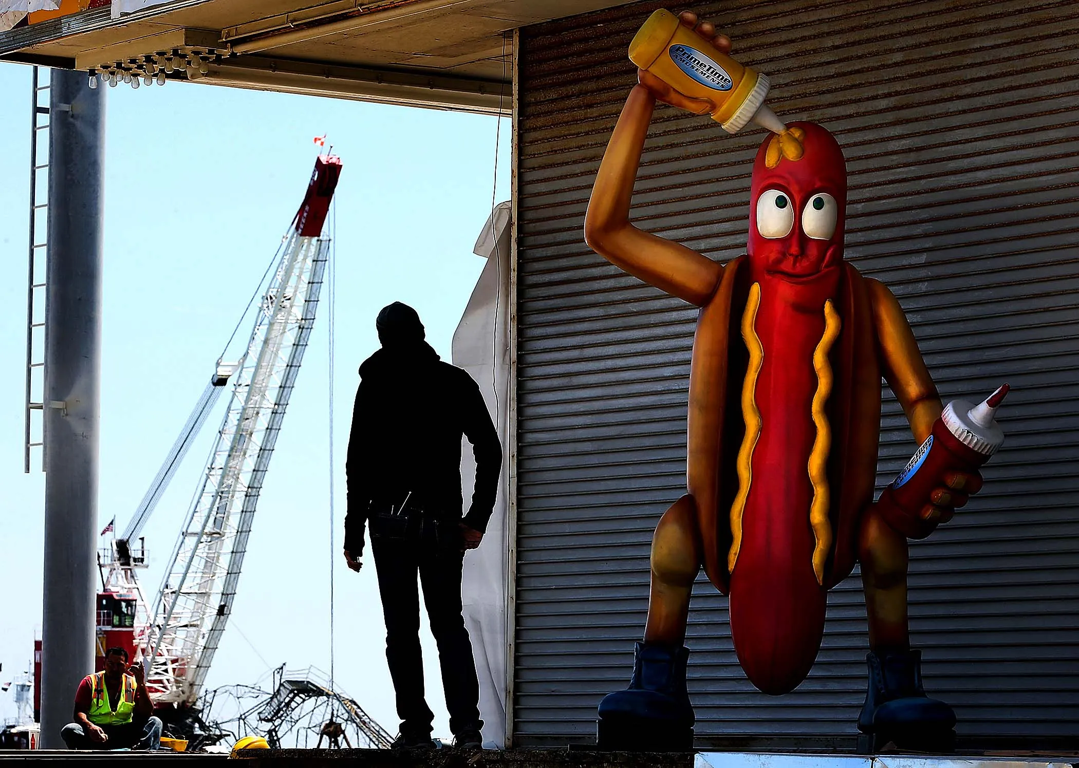 A man watches the removal of the Star Jet roller coaster that has been in the ocean for six months after the Casino Pier it sat on collapsed when Superstorm Sandy hit Seaside Heights, New Jersey, on May 14, 2013. (Photo by Mark Wilson/Getty Images)