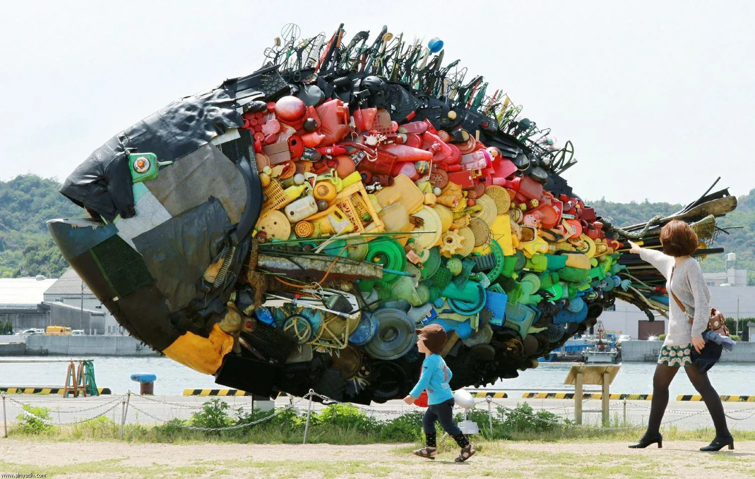A large sea bream object, made from colourful debris found drifting at sea, such as plastic tanks, toys and wires, and produced by Japanese art group Yodogawa Tecnique, is displayed at the Setouchi Triennale art event at the port of Uno, Okayama prefecture in western Japan on May 19, 2013. (Photo by Jiji Pres/AFP Photo)
