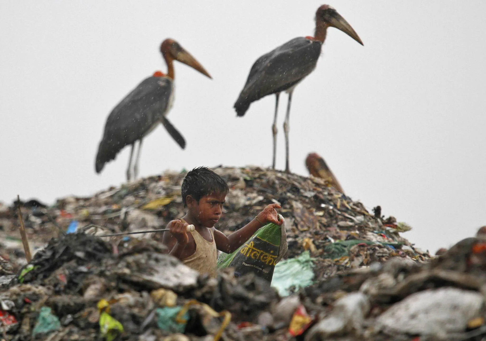 A scavenger, surrounded by a flock of Greater Adjutant birds, collects plastic for recycling at a dump site on World Environment Day in the northeastern Indian city of Guwahati June 5, 2013. (Photo by Utpal Baruah/Reuters)