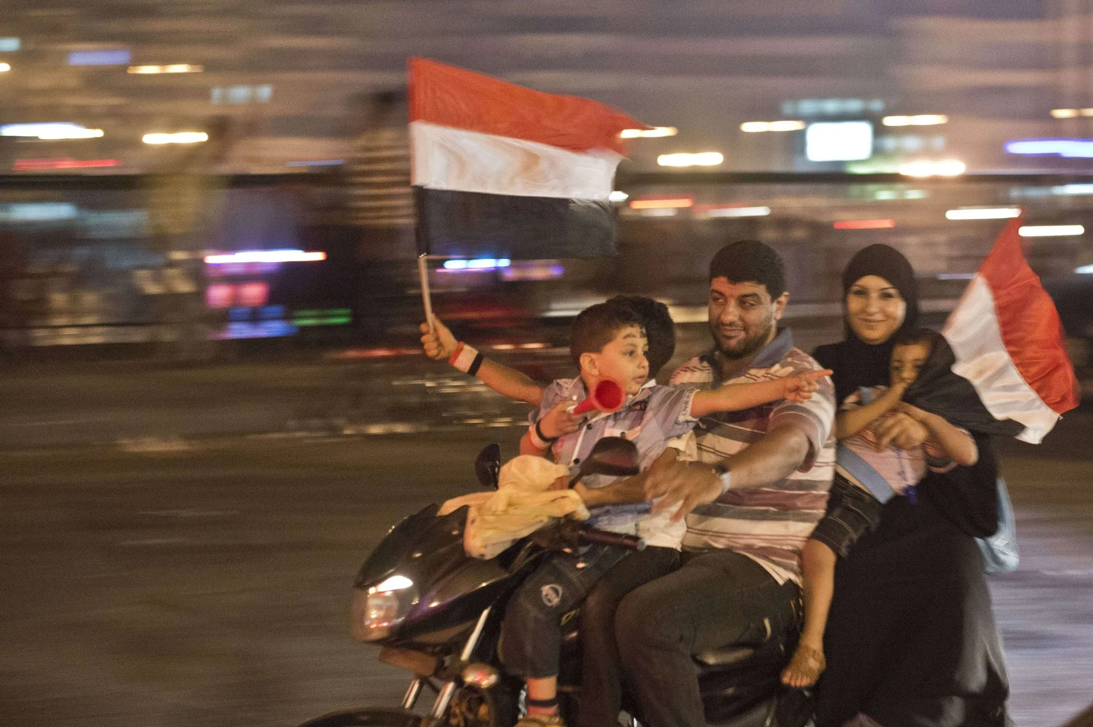 An Egyptian family on motorcycle celebrates in Cairo, on July 4, 2013. (Photo by Khaled Desouki/AFP Photo)