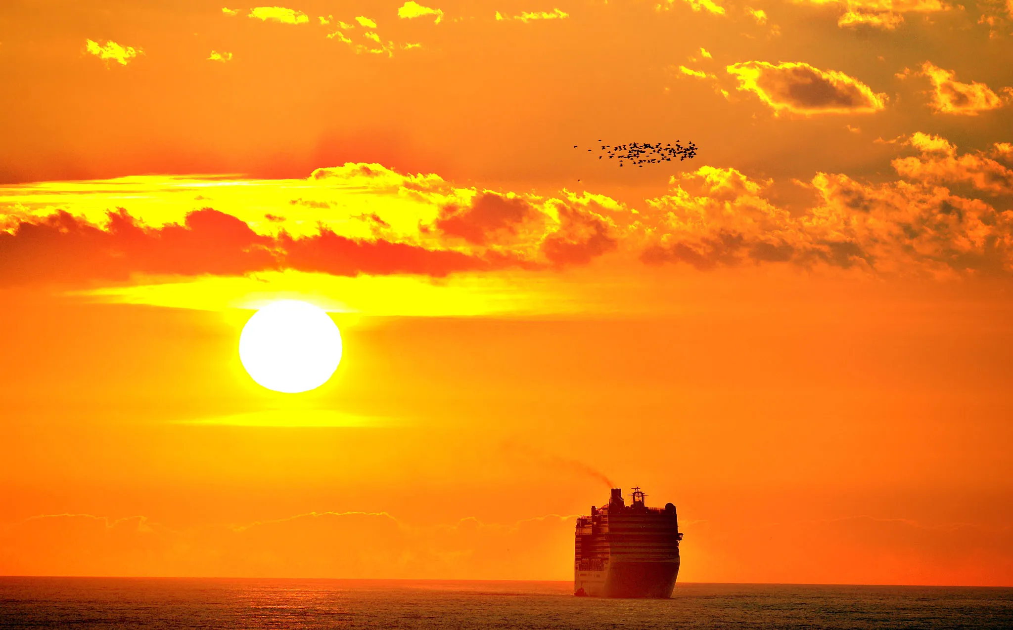 The MSC Magnifica cruise ship enters the mouth of River Tyne at sunrise, on August 27, 2013. The MSC Magnifica ship is 293.8 metres long, has 1259 cabins and can carry 2,500 passengers who are looked after by a 1,000-strong crew. (Photo by Owen Humphreys/PA Wire)