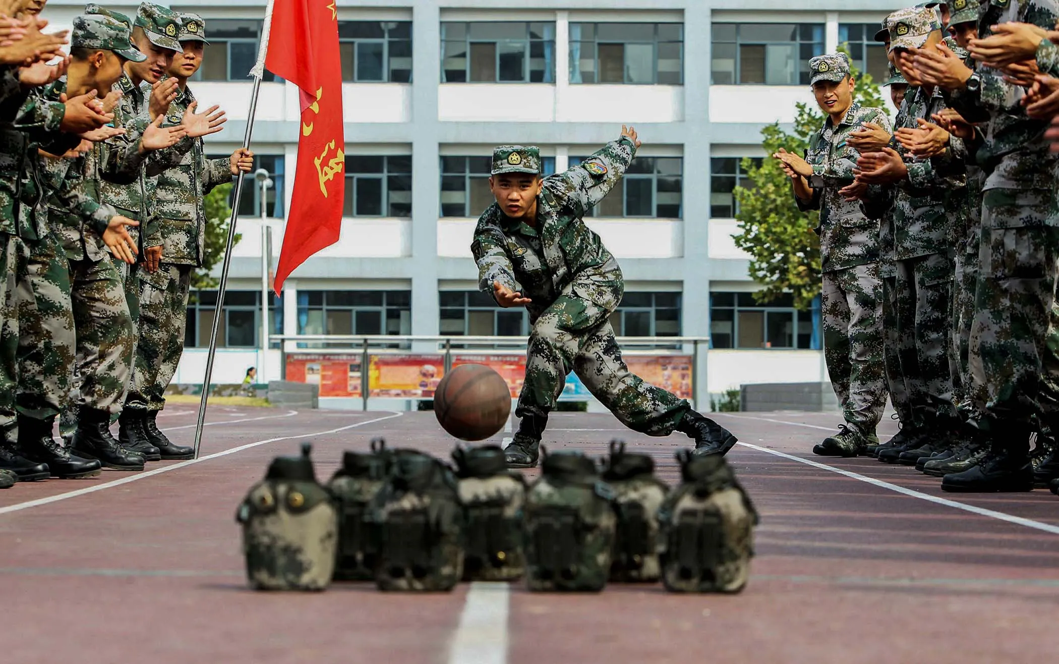 Soldiers of Chinese People's Liberation Army “bowl” during China's seven-day National Day holiday in Jinan, Shandong province, on October 3, 2013. (Photo by China Daily)