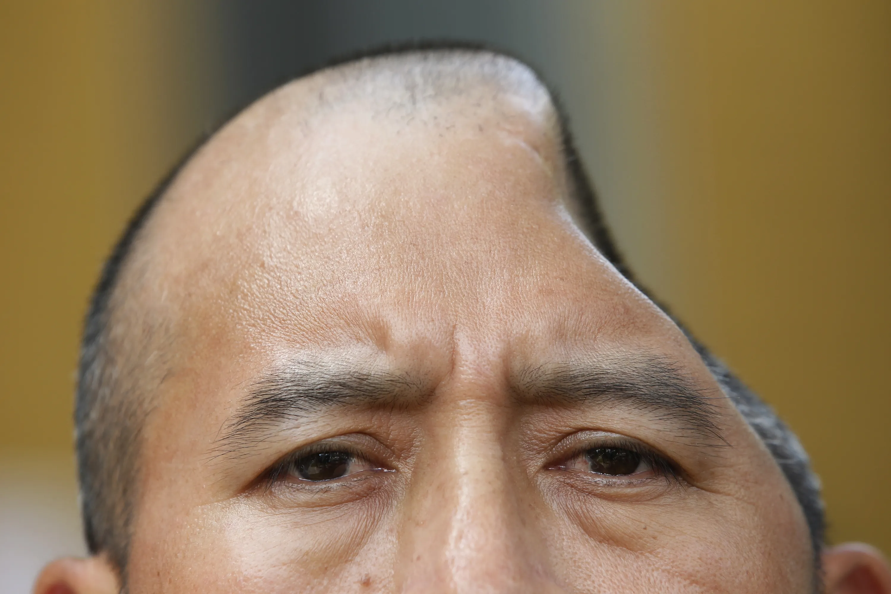 Antonio Lopez Chaj, a 43-year-old house painter, appears with his attorneys at a news conference in Los Angeles Monday, July 1, 2013. Lopez Chaj is so badly brain damaged for a beating in a bar that left him with half his skull permanently bashed in that he cannot speak. His lawyers announced he has been awarded a $58 million by a jury in Torrance Superior Court. (Photo by Nick Ut/AP Photo)