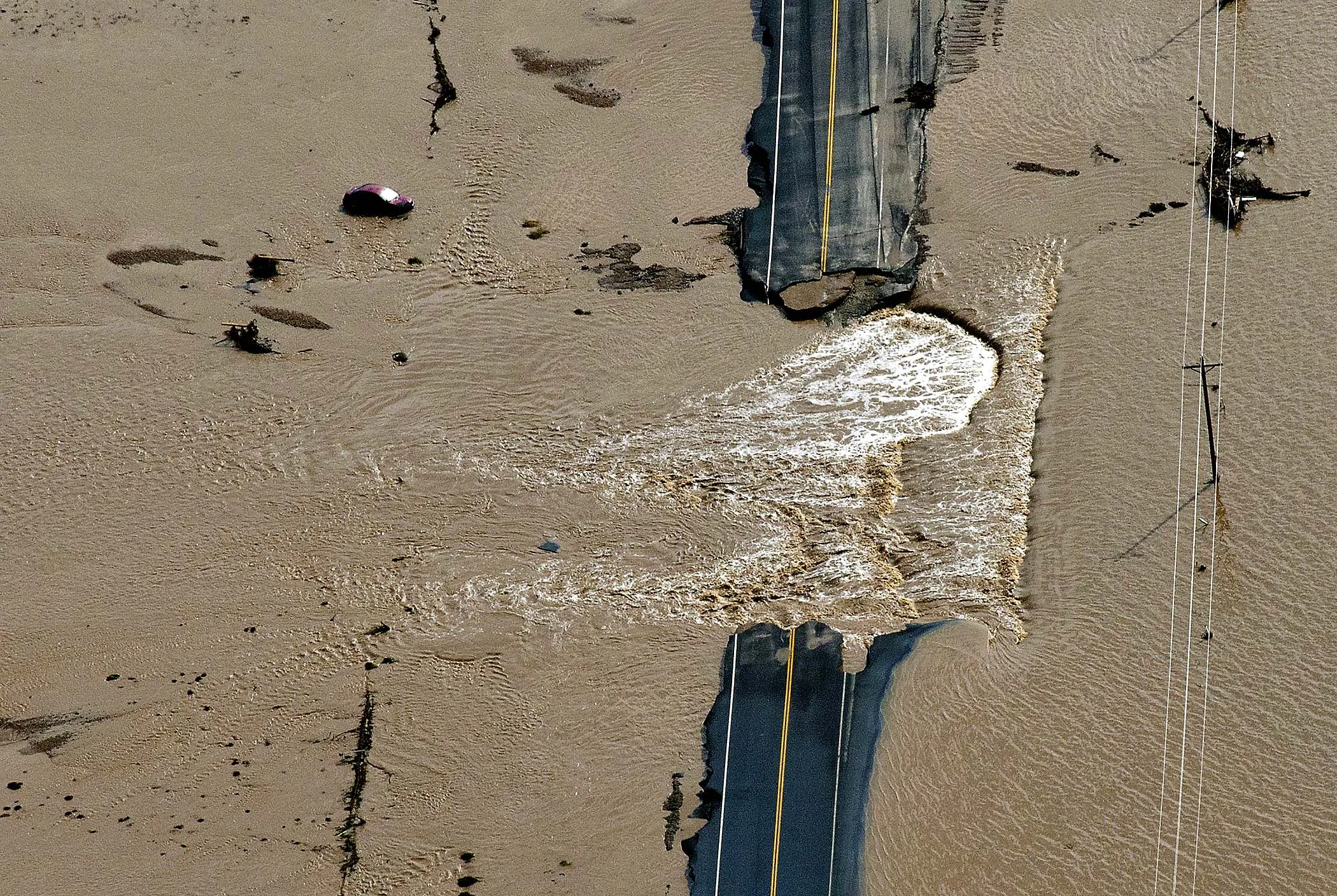 A section of highway is washed out by flooding along the South Platte River in Weld County, Colorado near Greeley, Saturday, September 14, 2013. (Photo by John Wark/AP Photo)