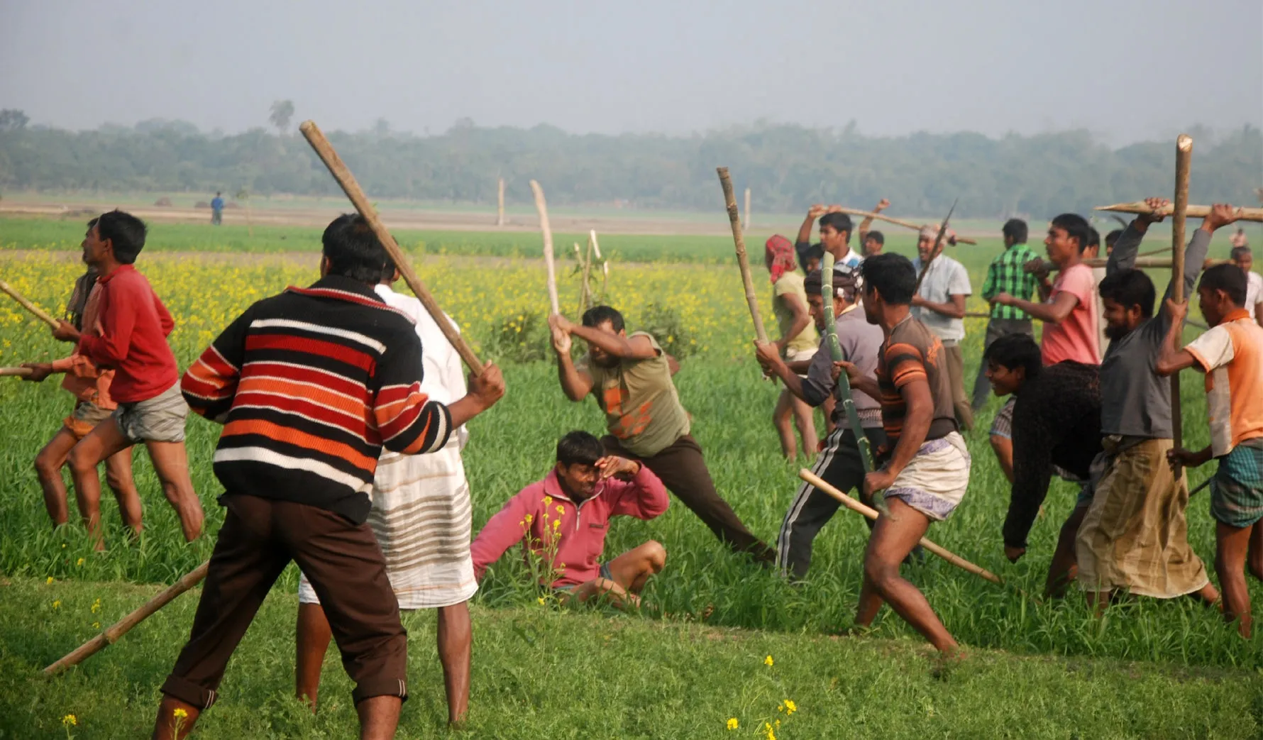 Activists of Bangladesh Jamaat-e-Islami party and Bangladesh Nationalist Party (BNP) attack an activist (bottom) of the Awami League during a clash in Rajshahi January 5, 2014. Bangladesh's ruling Awami League was poised on Sunday to win a violence-plagued parliamentary election whose outcome was never in doubt after a boycott by the main opposition party. With fewer than half of the 300 seats being contested, voters cast ballots in modest numbers amid heavy security in polling that lacked the festivity typical of Bangladeshi elections and was shunned by international observers as flawed. (Photo by Reuters/Stringer)
