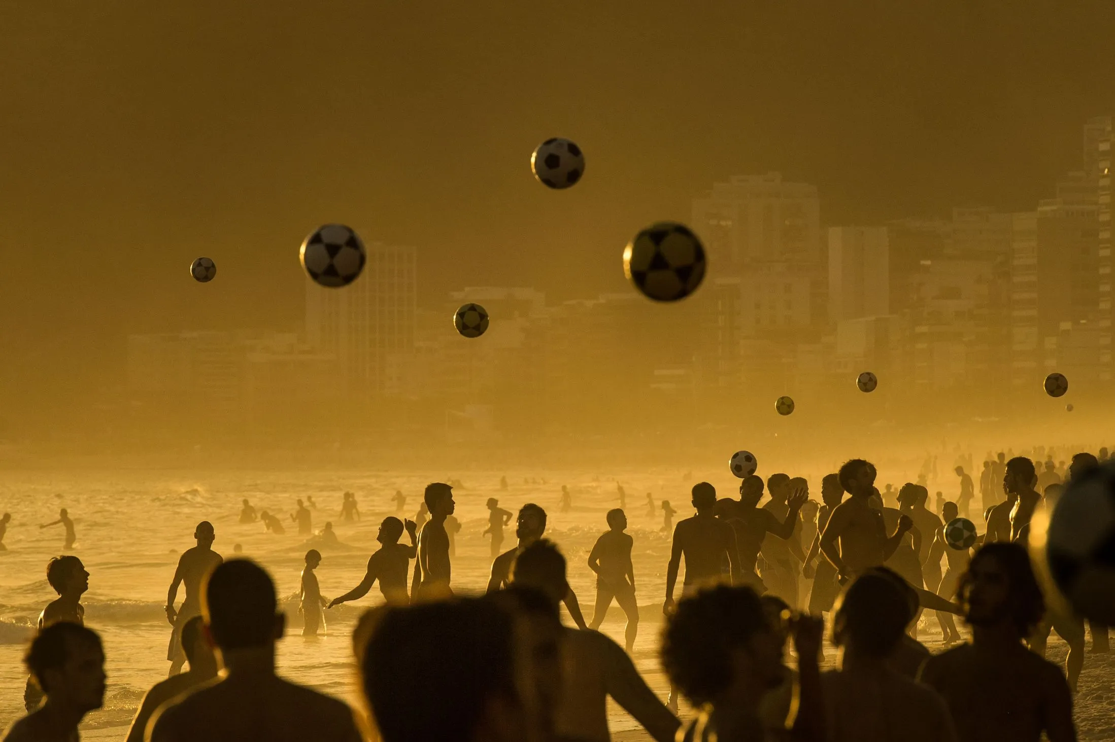 People play football at sunset at Ipanema Beach in Rio de Janeiro, Brazil, on January 14, 2014. (Photo by Yasuyoshi Chiba/AFP Photo)
