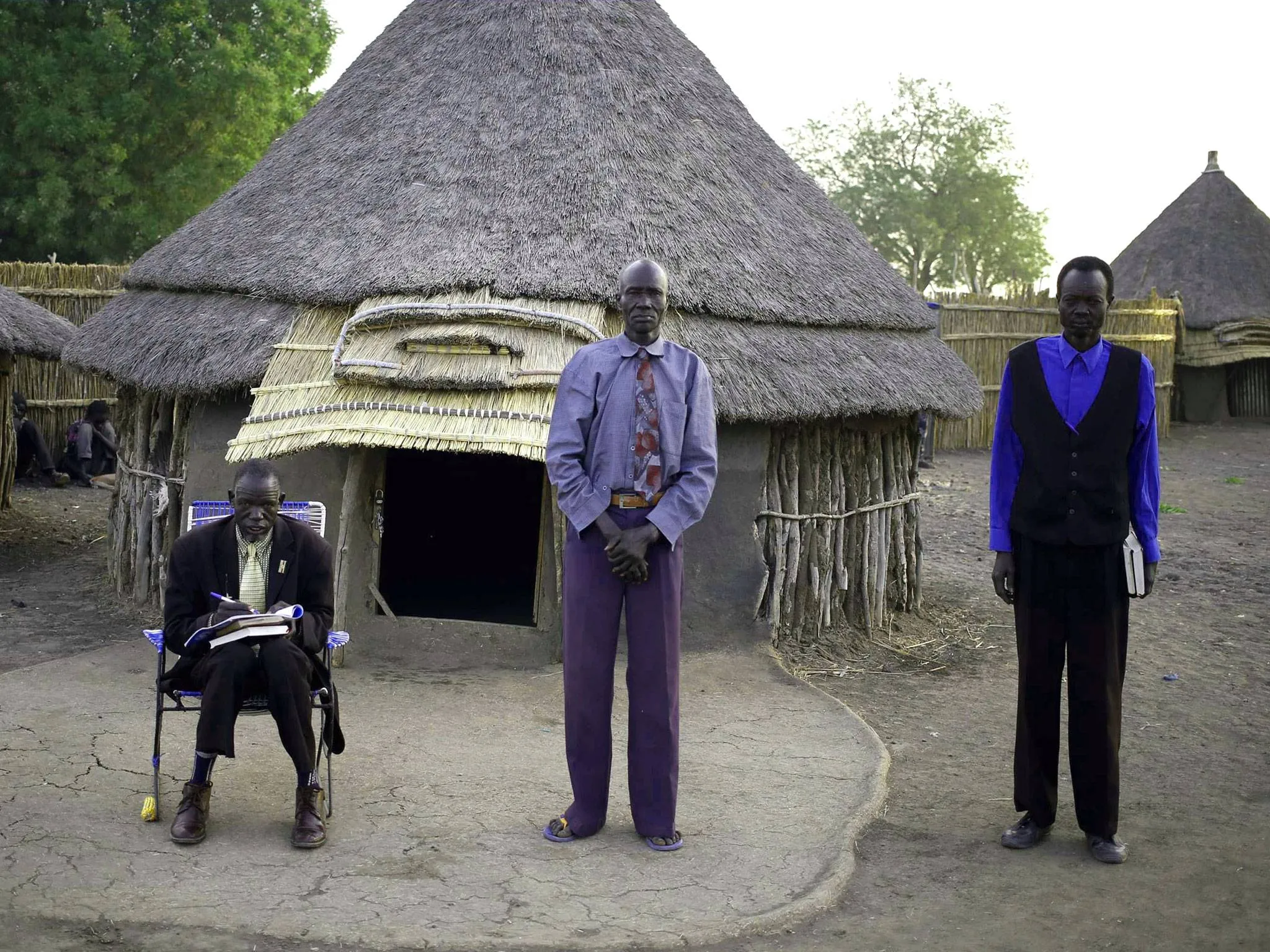 Men wait for Sunday mass near a church at a village in a rebel-controlled territory in Upper Nile State, South Sudan, February 9, 2014. (Photo by Goran Tomasevic/Reuters)