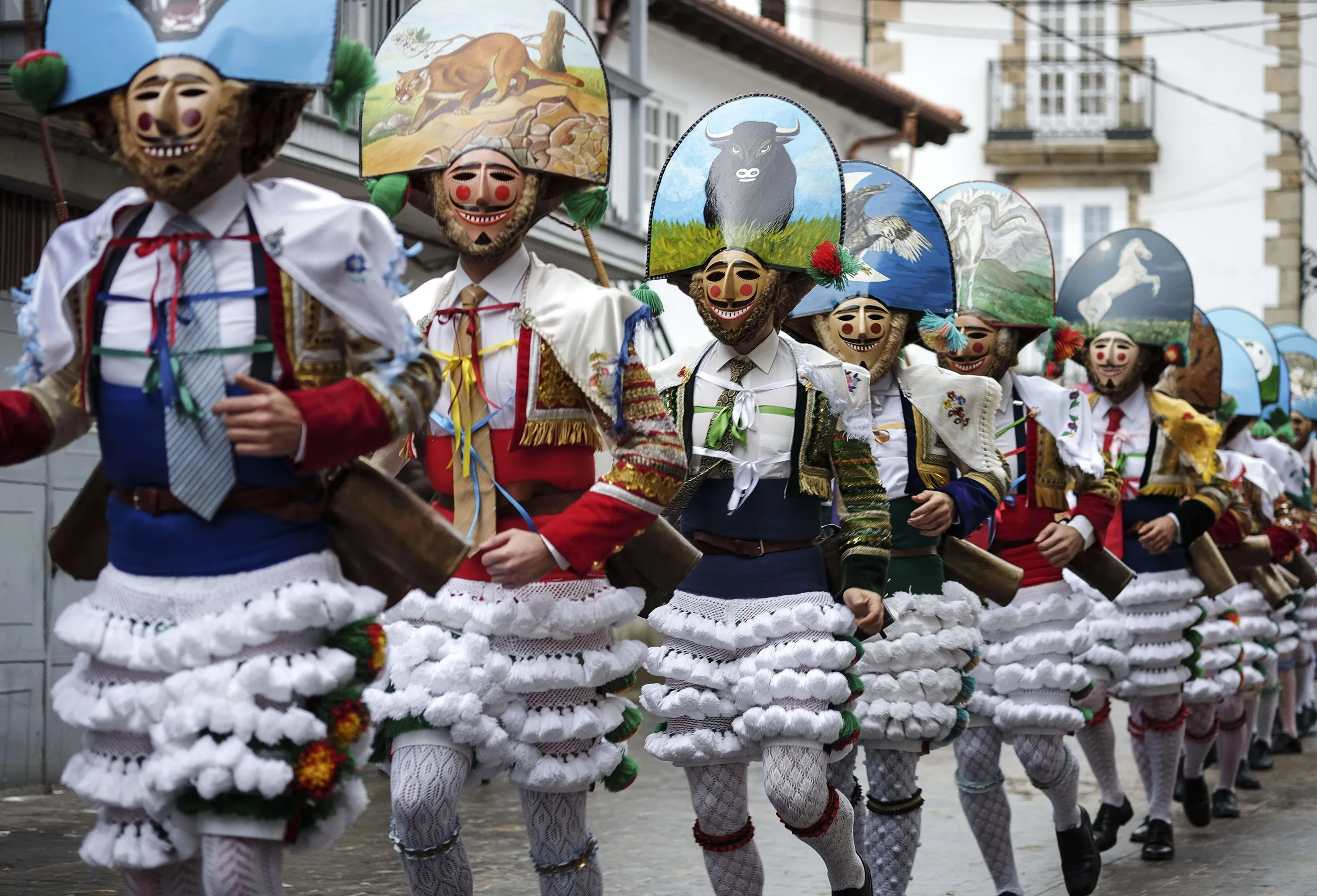 The 'Peliqueiros' or hairdressers take part in the “Entroido” carnival festival in Laza, near Ourense, northwestern Spain, on March 2, 2014. (Photo by Pedro Armestre/AFP Photo)