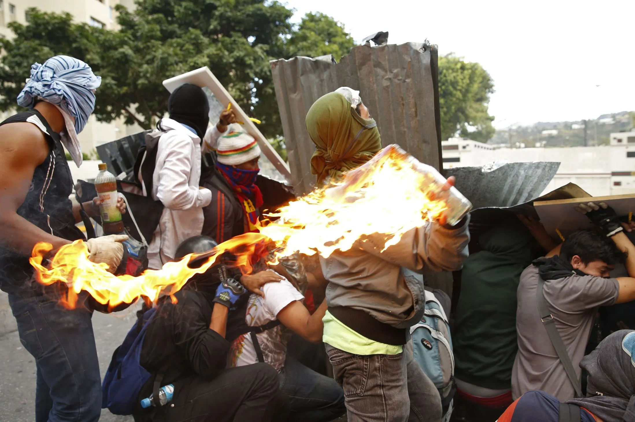 An anti-government protester throws a petrol bomb during clashes with police in Caracas, on March 2, 2014. (Photo by Carlos Garcia Rawlins/Reuters)