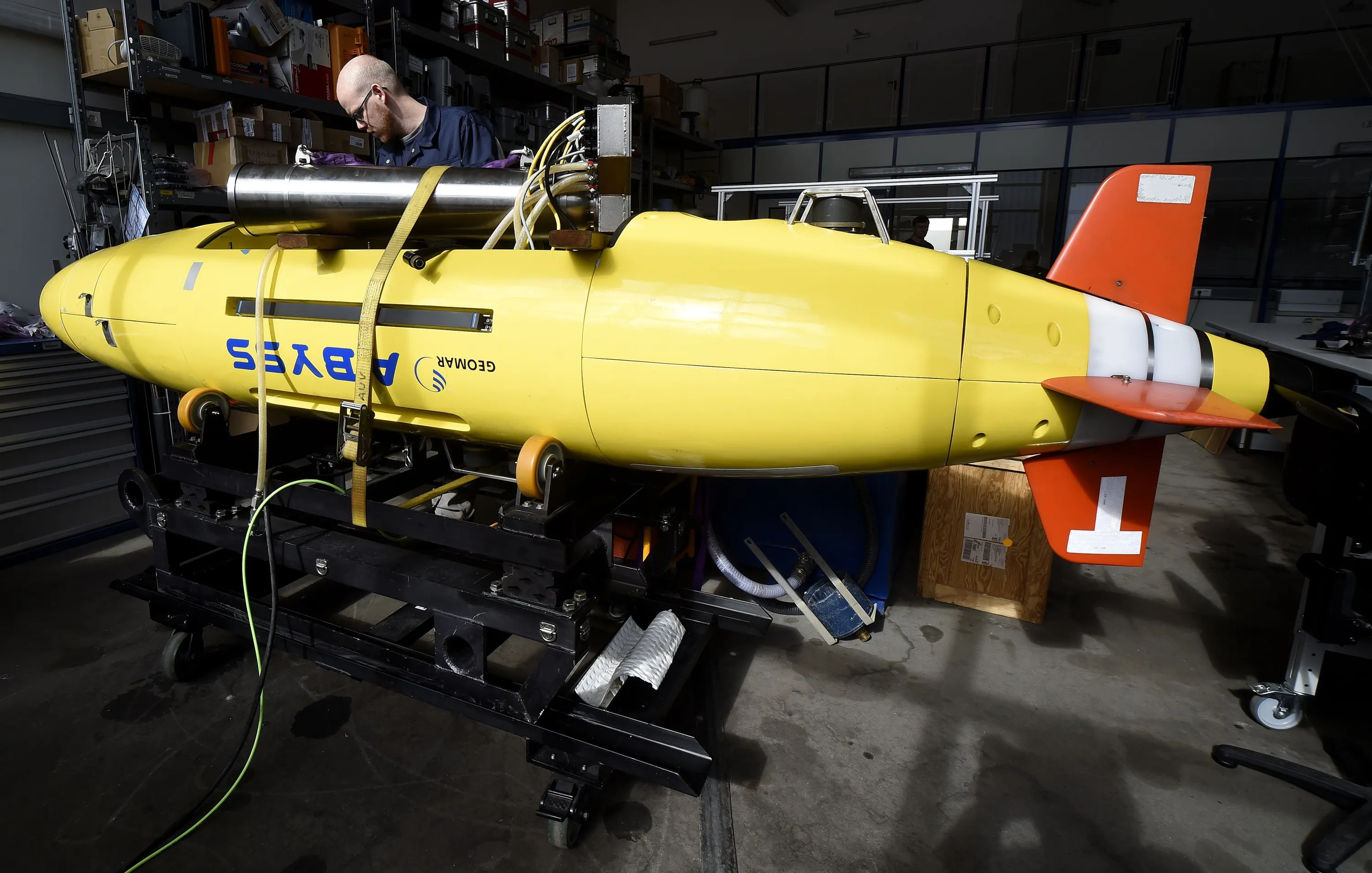 Electrical engineer Lars Triebe inspects the Autonomous Underwater Vehicle (AUV) “Abyss” in preparation for operational service, at the Helmholtz Centre for Ocean Research Kiel (GEOMAR) in Kiel March 24, 2014. The “Abyss”, one of only three worldwide unmanned deep sea search submarines, may join the hunt for the missing Malaysia Airlines flight MH370. The submarine is designed to perform hydrographic reconnaissance in all parts of the ocean in depths up to 6000 meters and can stay submerged for up to 22 hours. (Photo by Fabian Bimmer/Reuters)