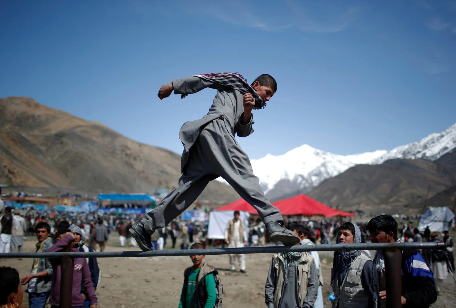 A man walks on a pole before the start of a campaign by Afghan presidential candidate Abdullah Abdullah in Panjshir province March 31, 2014. (Photo by Ahmad Masood/Reuters)