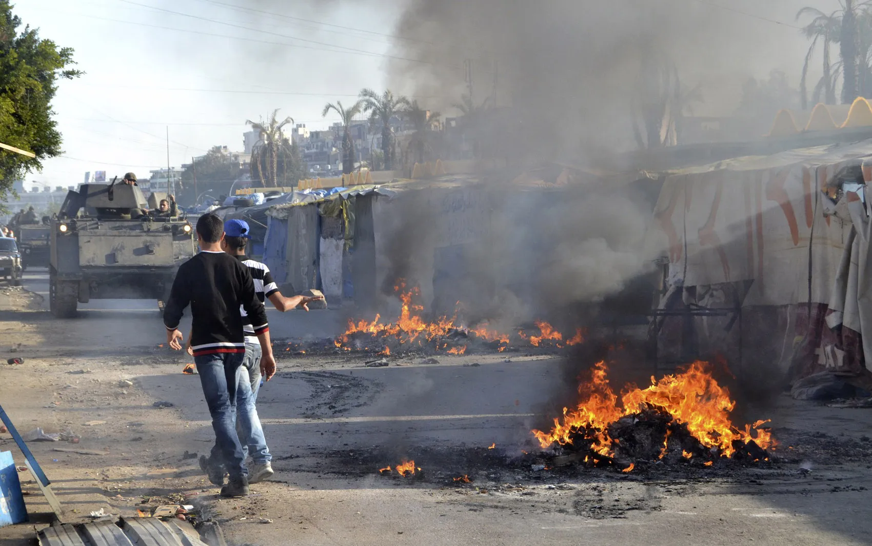 Sunni Muslim protesters set fire, blocking a road in the northern city of Tripoli, to protest against the Lebanese army's ongoing raids that are part of their security plan for the city in a push to control sectarian violence fuelled by the war in Syria April 8, 2014. (Photo by Reuters/Stringer)