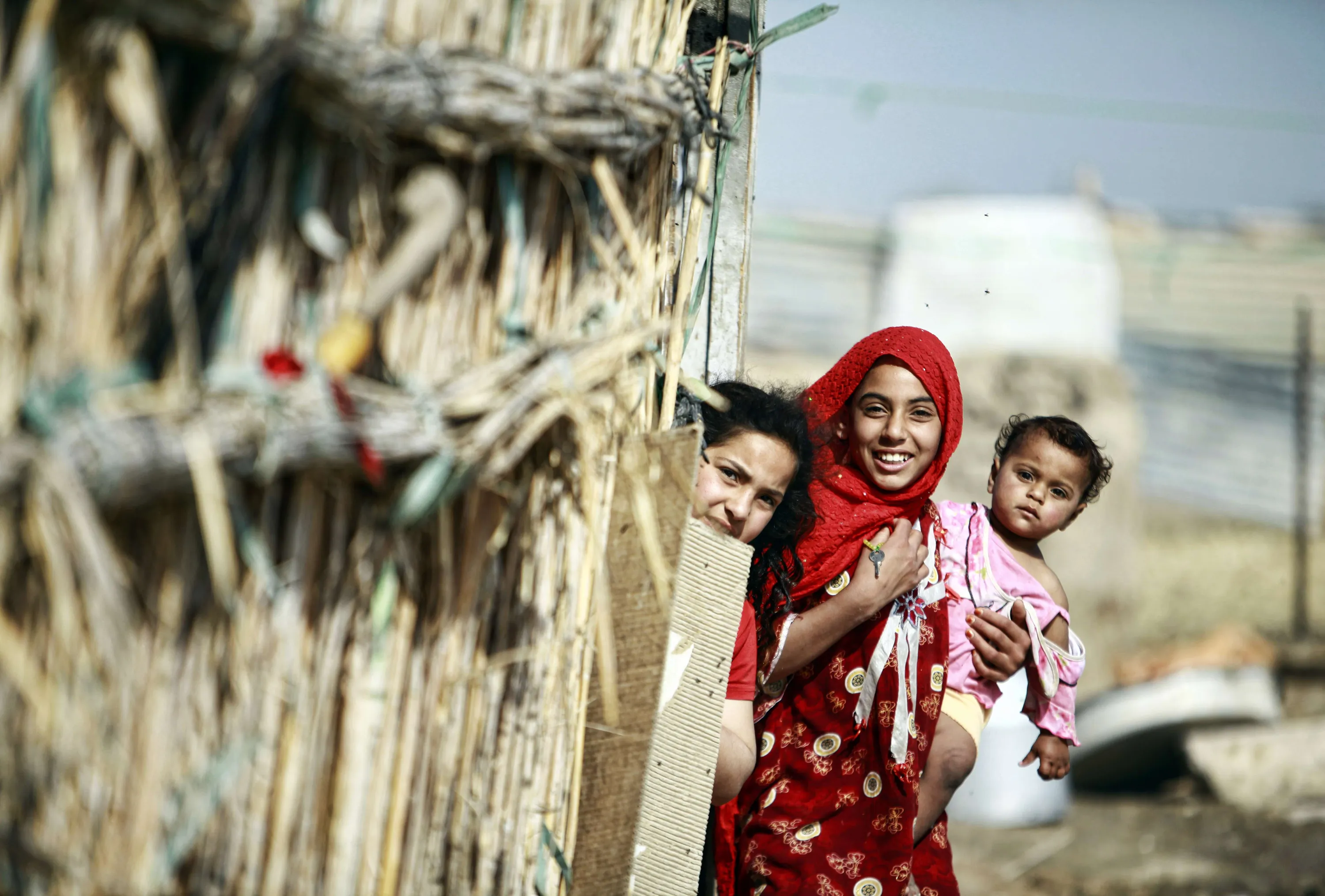 Young women look out from a hut in an agricutural area south of Iraq's central Shiite Muslim Shrine city of Najaf on April 14, 2014. (Photo by Haidar Hamdani/AFP Photo)