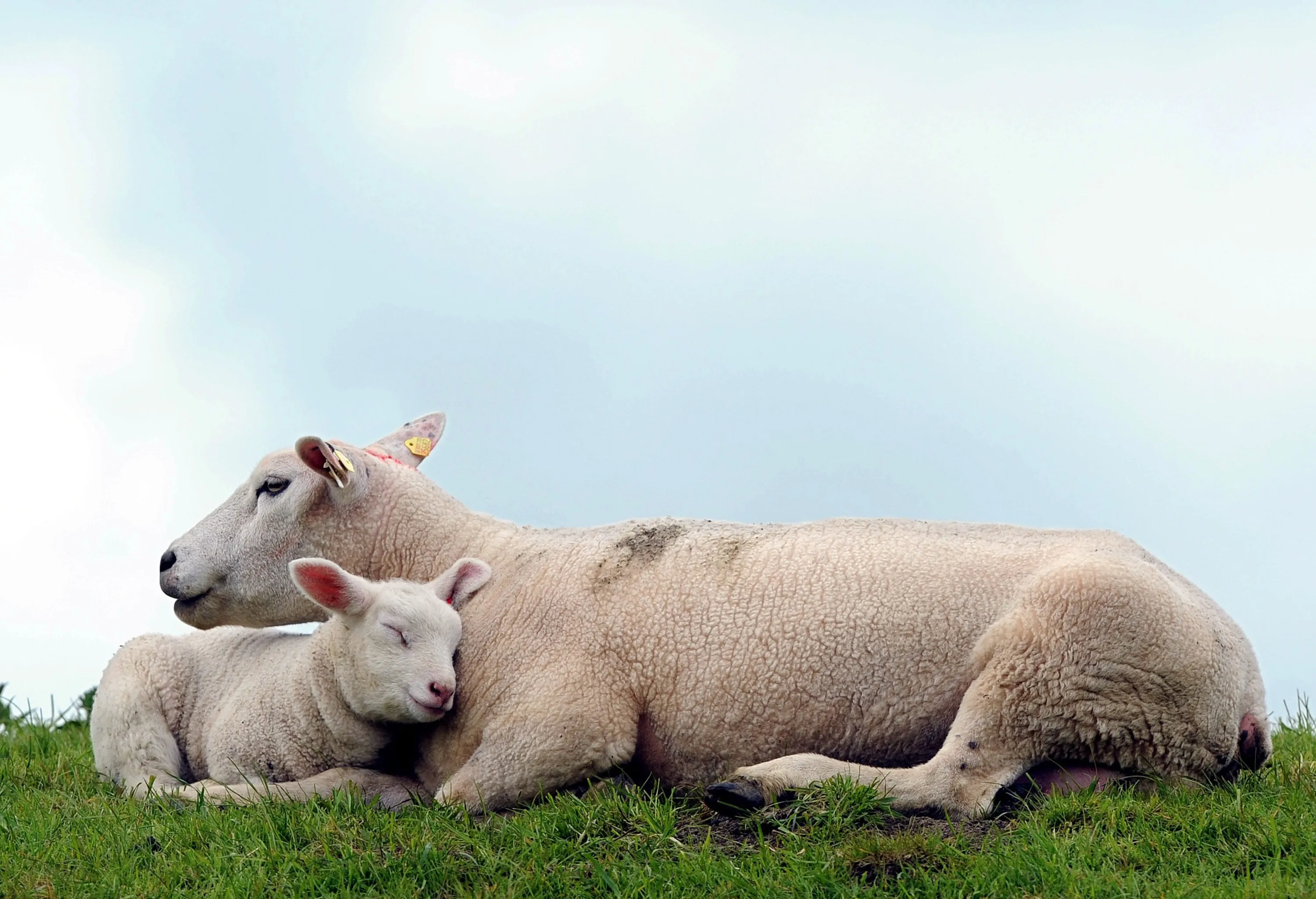 A lamb cuddles with its mother on the Ems dike near Leer, Germany, 18 April 2014. Lamb is a traditional dish at Easter. (Photo by Ingo Wagner/EPA)