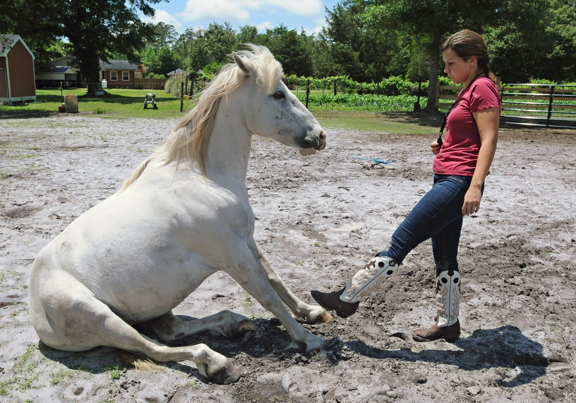 Lauryn Zepeda, one of the 10 horse trainers chosen to participate in LOPES Rescues competition, works with Gringo, a mustang, in Bolivia, N.C., Friday, May 216, 2014. Zepeda utilizes the clicker tool method that disciplines animals through positive reinforcement. (Photo by Mike Spencer/AP Photo/The Star-News)