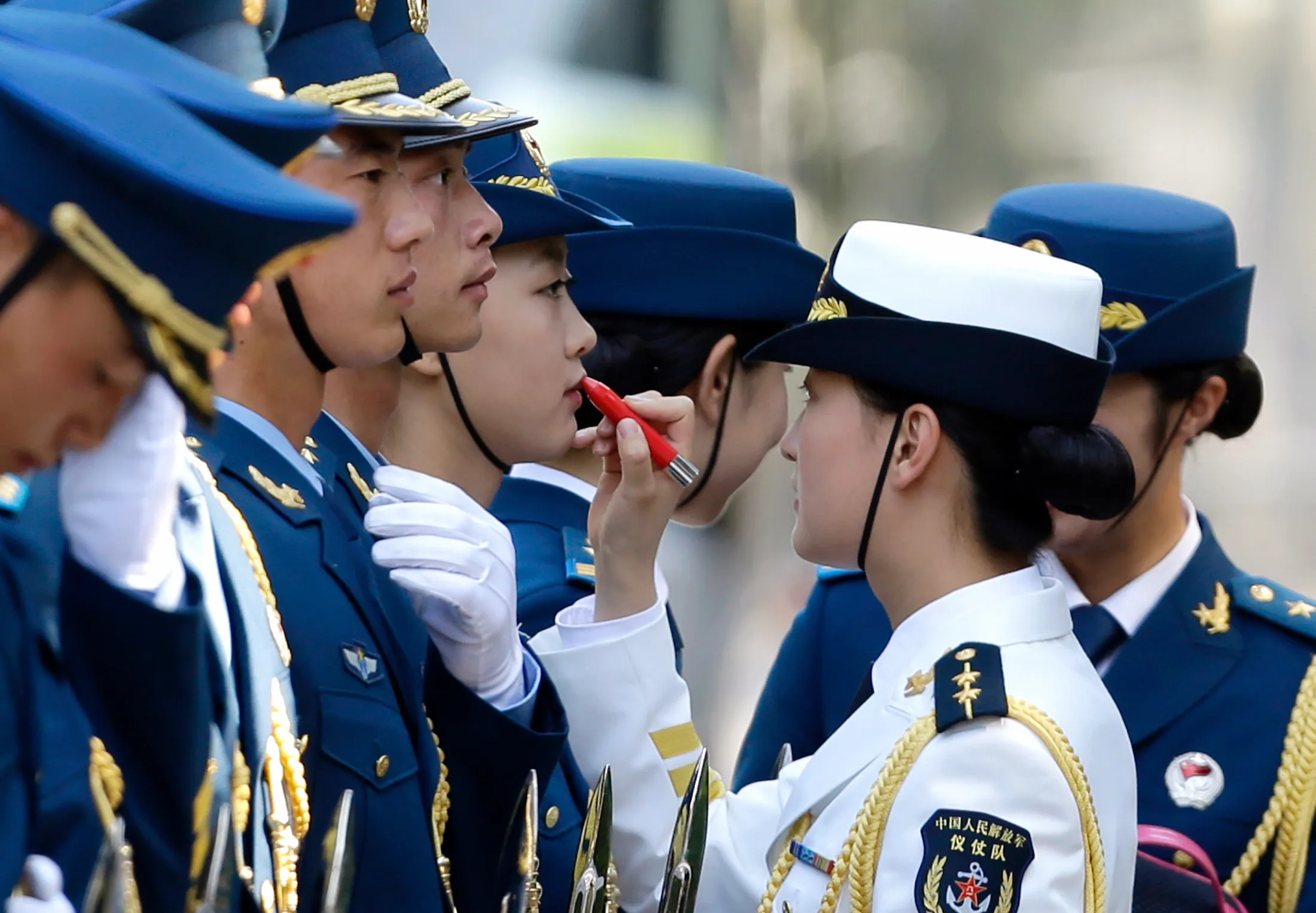 A female honour guard has lipstick applied as they prepare for an official welcoming ceremony for Italy's Prime Minister Matteo Renzi outside the Great Hall of the People in Beijing, June 11, 2014. (Photo by Jason Lee/Reuters)