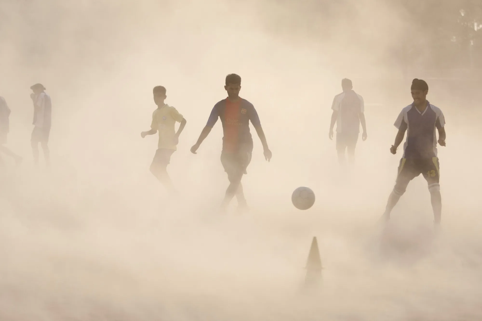 Aspiring young Indian soccer players continue with their practice during a dust storm in Jammu, India, Wednesday, June 11, 2014. (Photo by Channi Anand/AP Photo)
