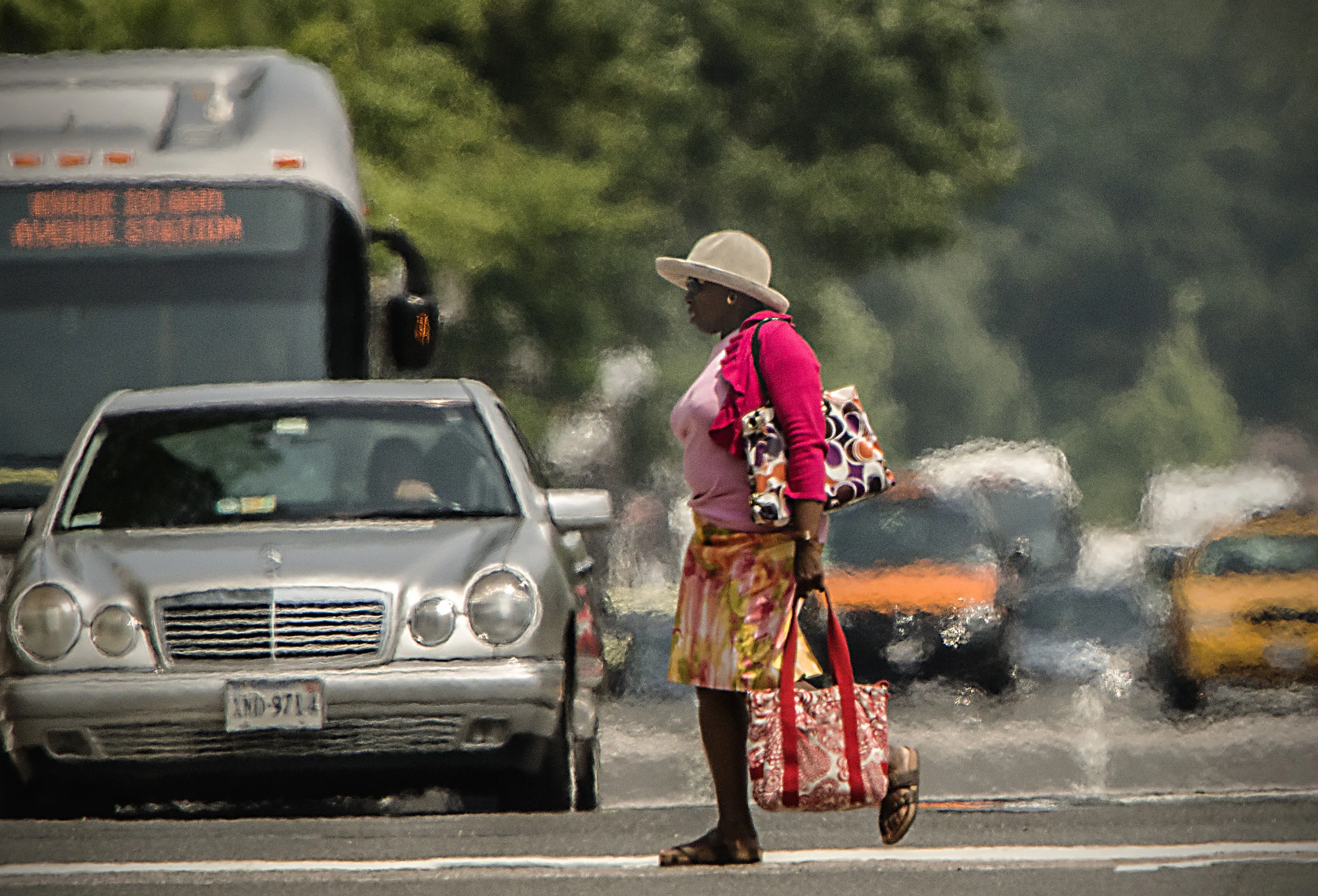 A pedestrian crosses Pennsylvania avenue, shimmering in the heat as temperatures climb to the mid 90's, on June, 18, 2014 in Washington, DC. (Photo by Bill O'Leary/The Washington Post)