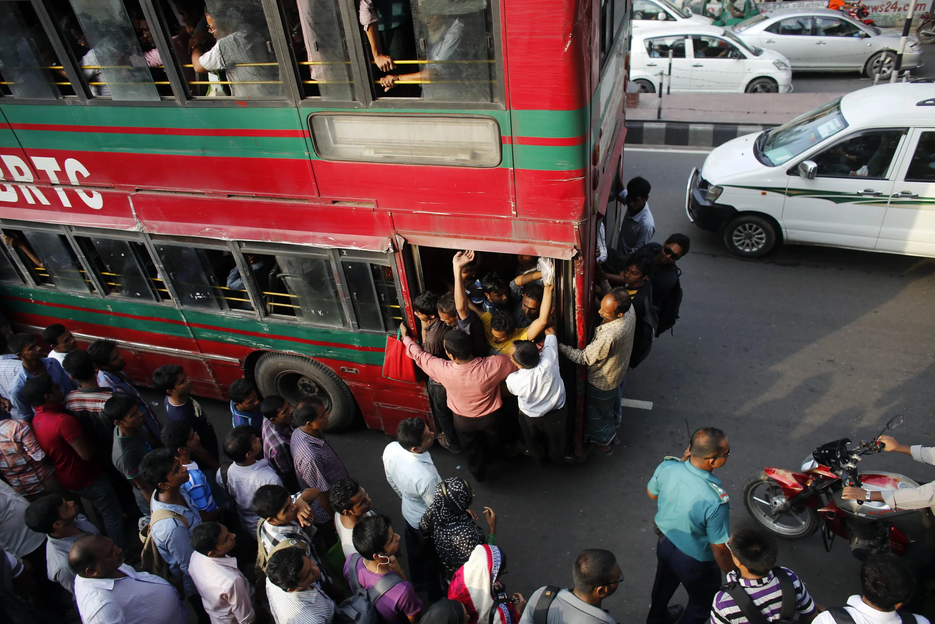 People wait to commute as an overloaded bus approaches on a street after office hours during Ramadan in Dhaka July 7, 2014. Although the government has shortened office hours during Ramadan, thousands of people are still unable to reach home before the time to break fast, due to heavy traffic, local media reported. (Photo by Andrew Biraj/Reuters)