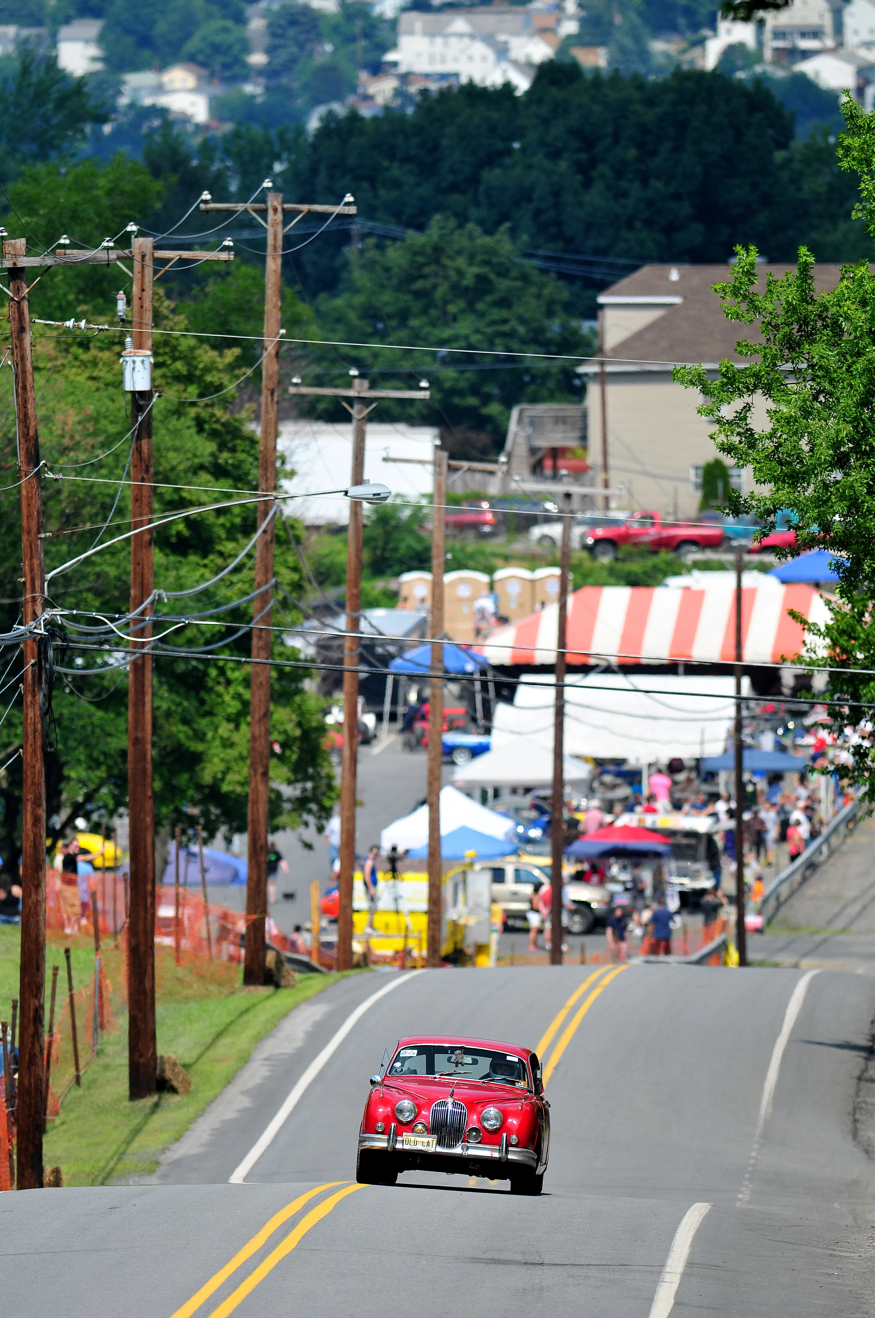 Sue Salsburg of Mays Landing, NJ, races her 1961 Jaguar MK2 up the Giants Despair hill, Saturday, July 12th, 2014 in Laurel Run, Pa. The race was first held in 1906. (Photo by Andrew Krech/AP Photo/Citizens' Voice)