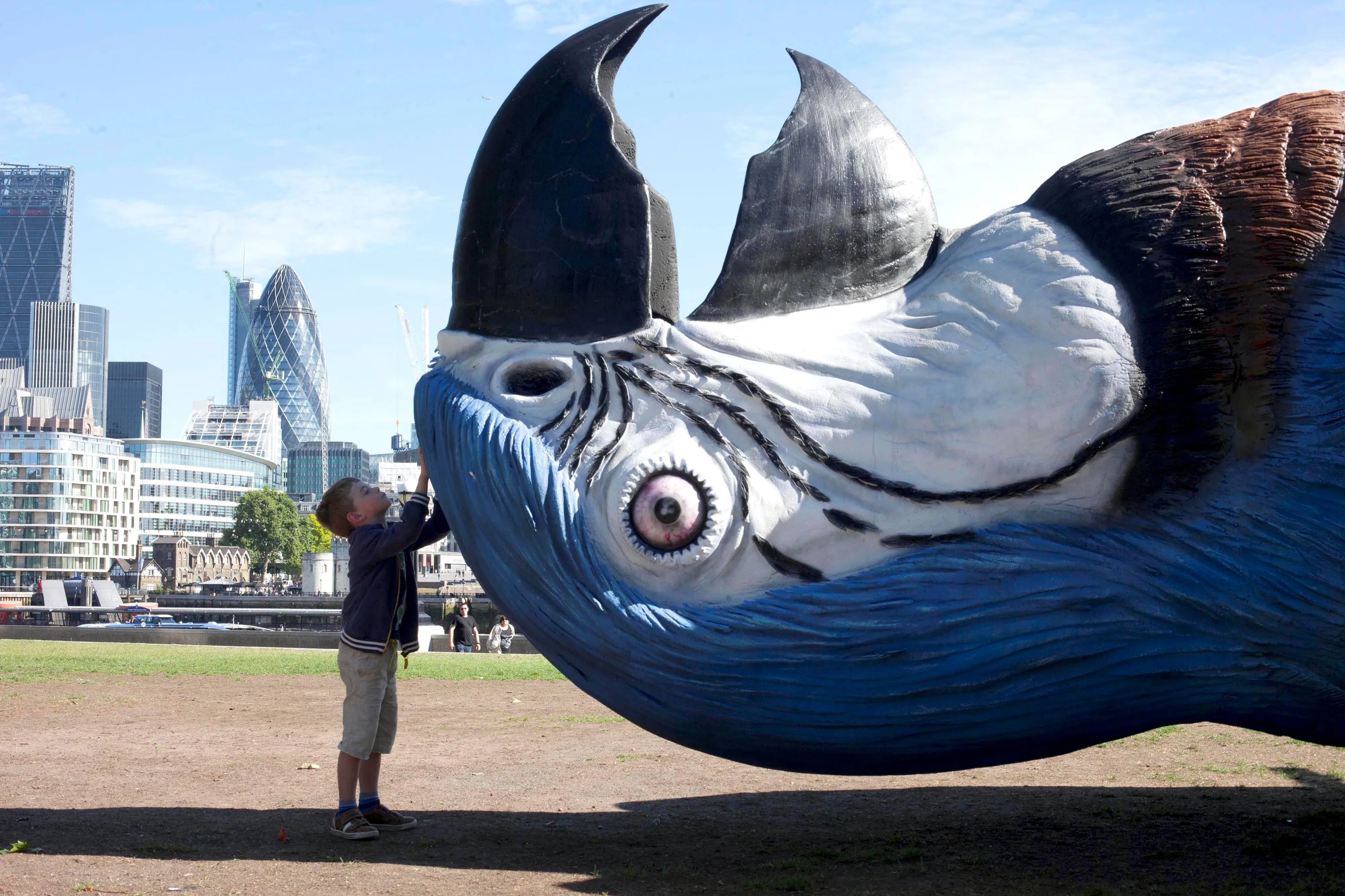 A giant dead parrot measuring 15 metres is unveiled on London's South Bank to promote the live broadcast of the final Monty Python Live stage show on comedy TV channel Gold this Sunday 20 July, 2014. A team of three sculptors spent over two months creating the homage to the famous Norwegian Blue after the dead parrot was voted the nation's favourite Monty Python sketch in a survey by the channel. (Photo by David Parry/PA Wire)